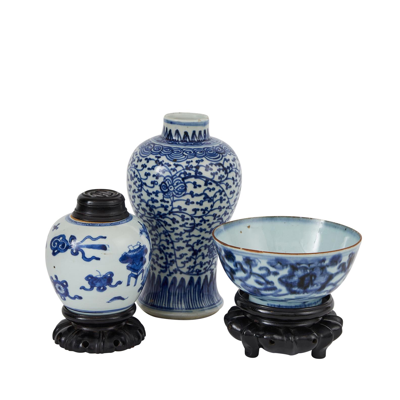 THREE PIECES OF CHINESE BLUE AND WHITE PORCELAIN