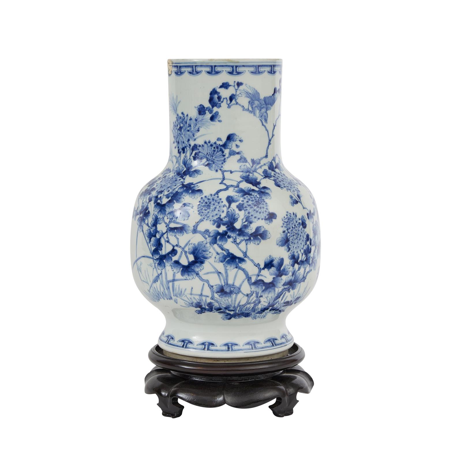 Painted all-over with chrysanthemums, anemones and grasses with birds and insects.