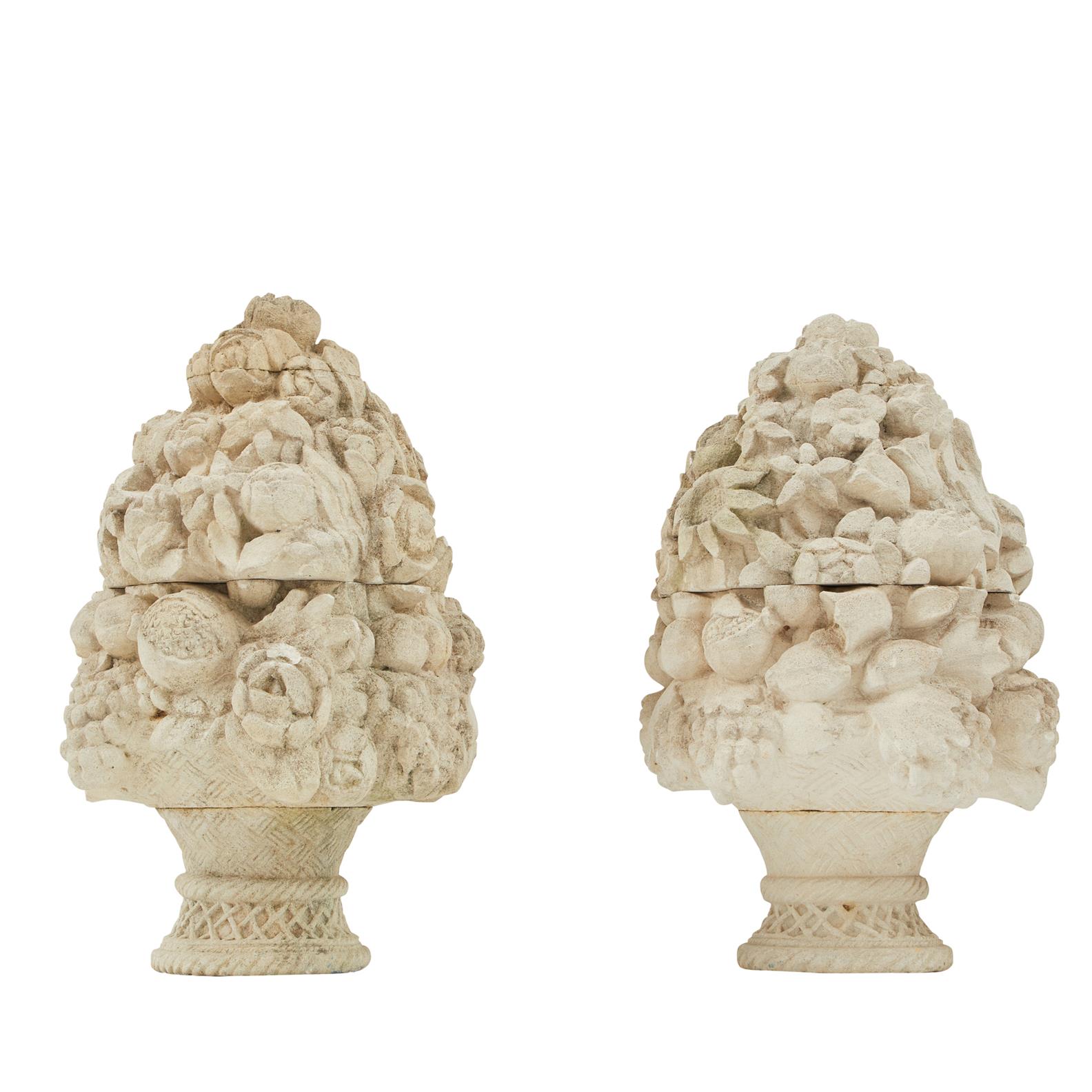 A PAIR OF MODERN COMPOSITION STONE GARDEN ORNAMENTS