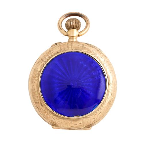 Case: engraved with royal blue enamelled case back, gilt cuvette no. 23336