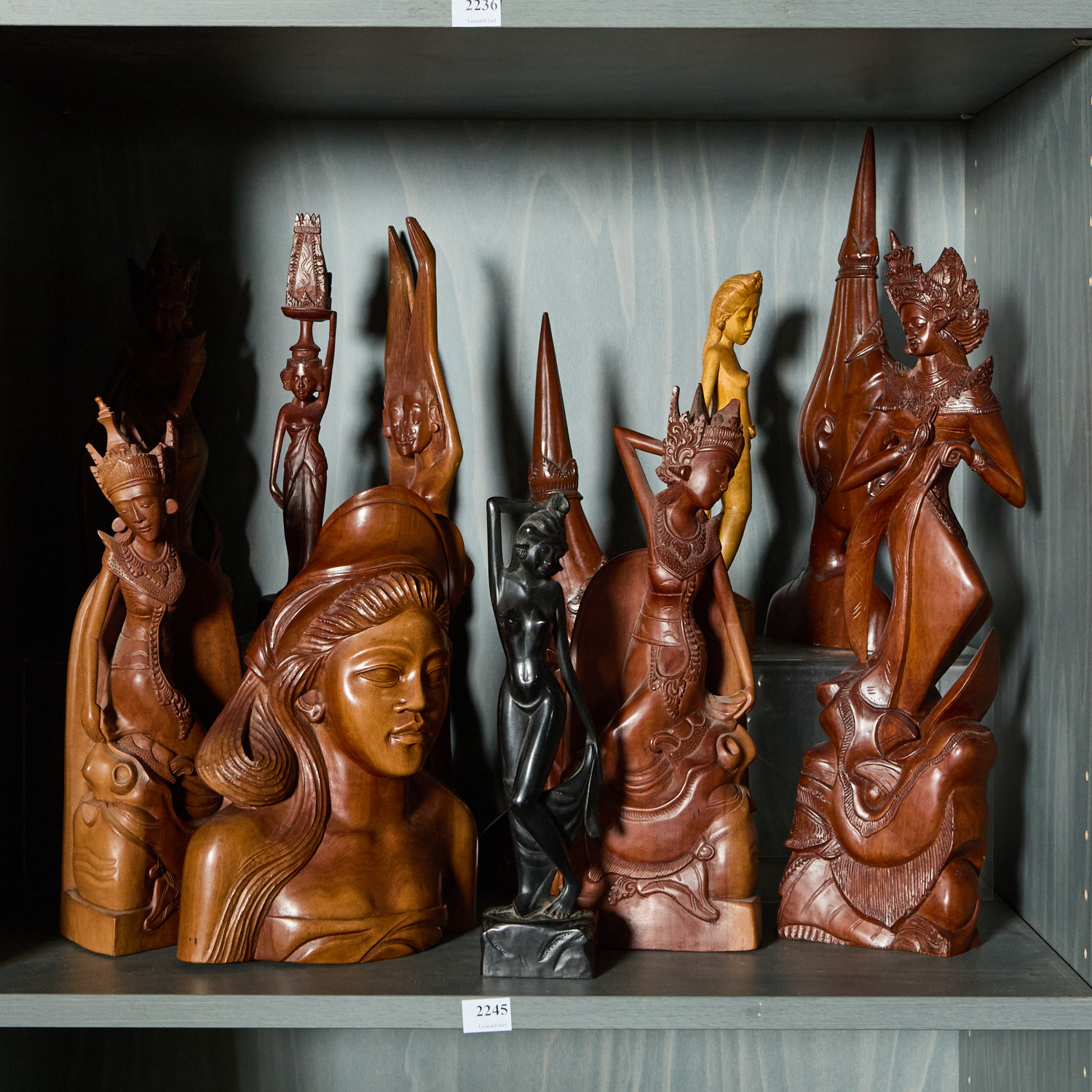 A LARGE COLLECTION OF SOUTHEAST ASIAN (BALINESE AND THAI) FIGURAL CARVINGS H.42CM (TALLEST)
