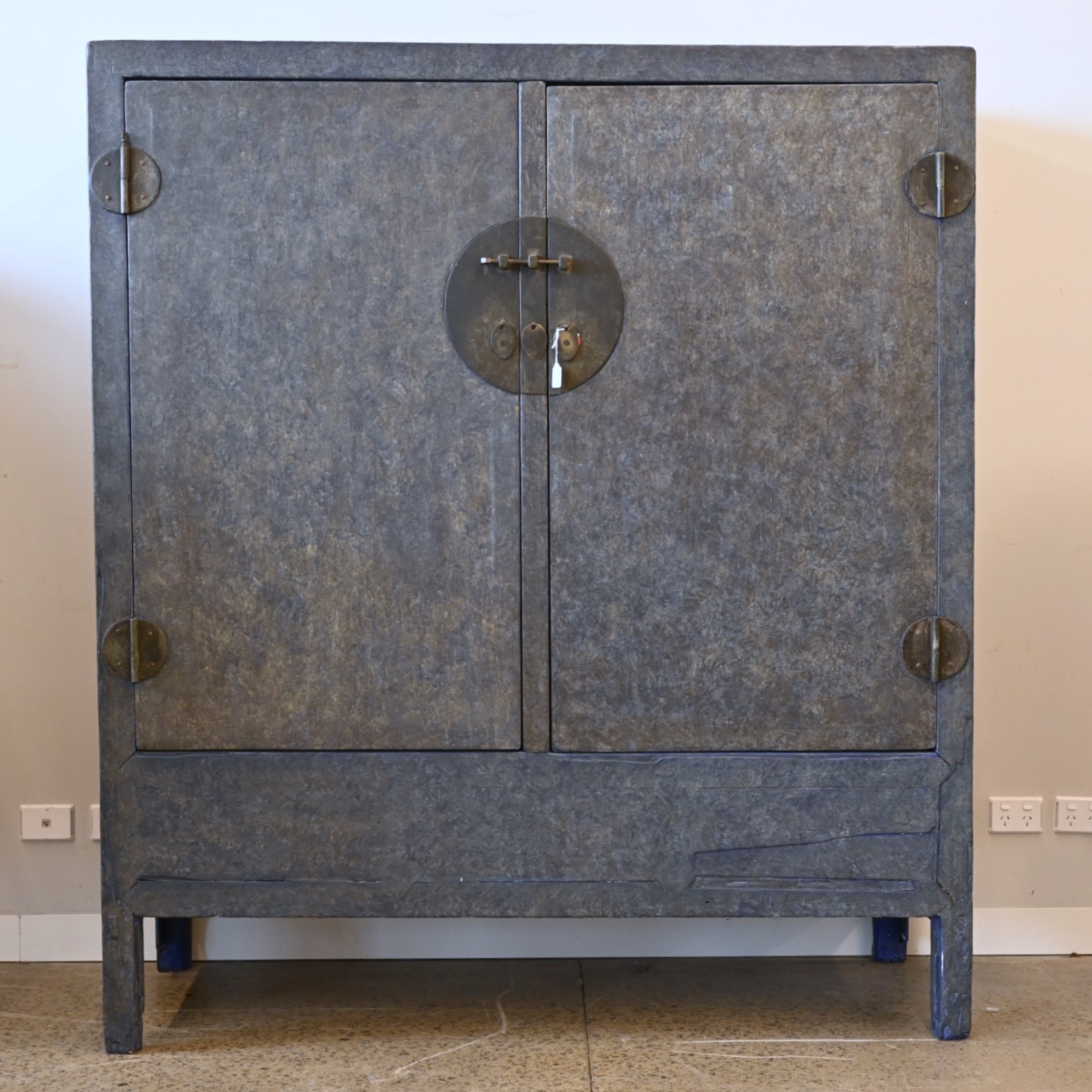 A CHINESE-STYLE PAINTED HARDWOOD CABINET (181CM H X 160CM W X 63CM D) (THIS ITEM MUST BE REMOVED BY PROFESSIONAL CARRIERS OR CLIENTS. LEONARD JOEL STAFF CANNOT ASSIST WITH CARRYING OR DELIVERY OF THIS ITEM)