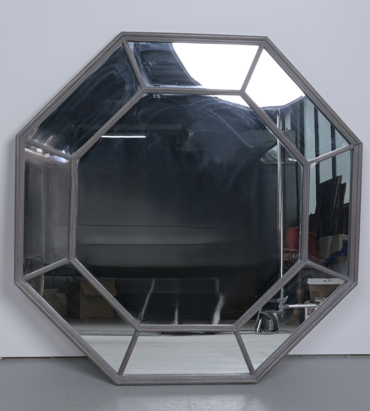 A CONTEMPORARY OCTAGONAL MIRROR (A/F) (123CM DIA)