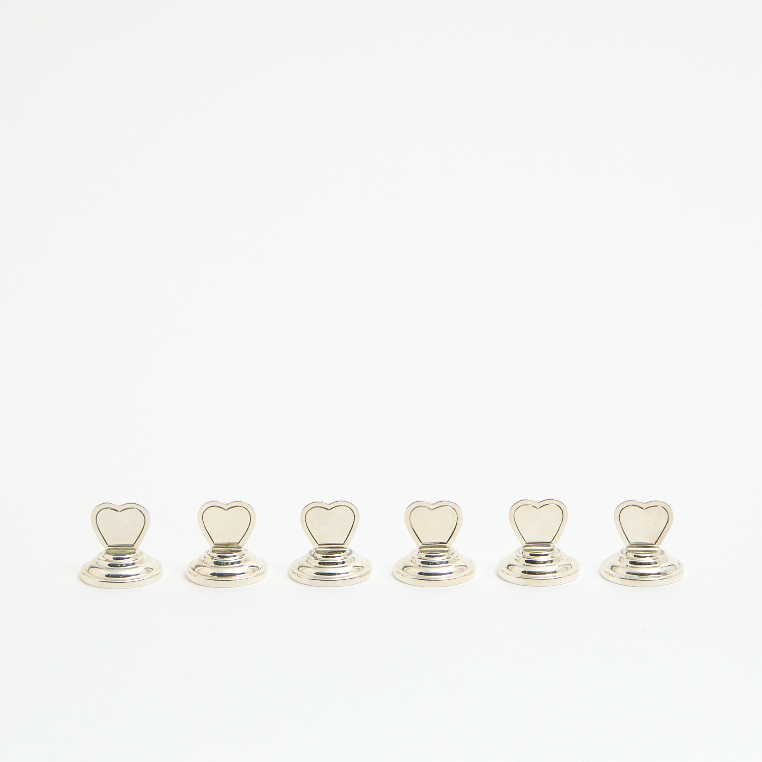 A SET OF SIX HEART-SHAPED STERLING SILVER PLACE HOLDERS H.4CM