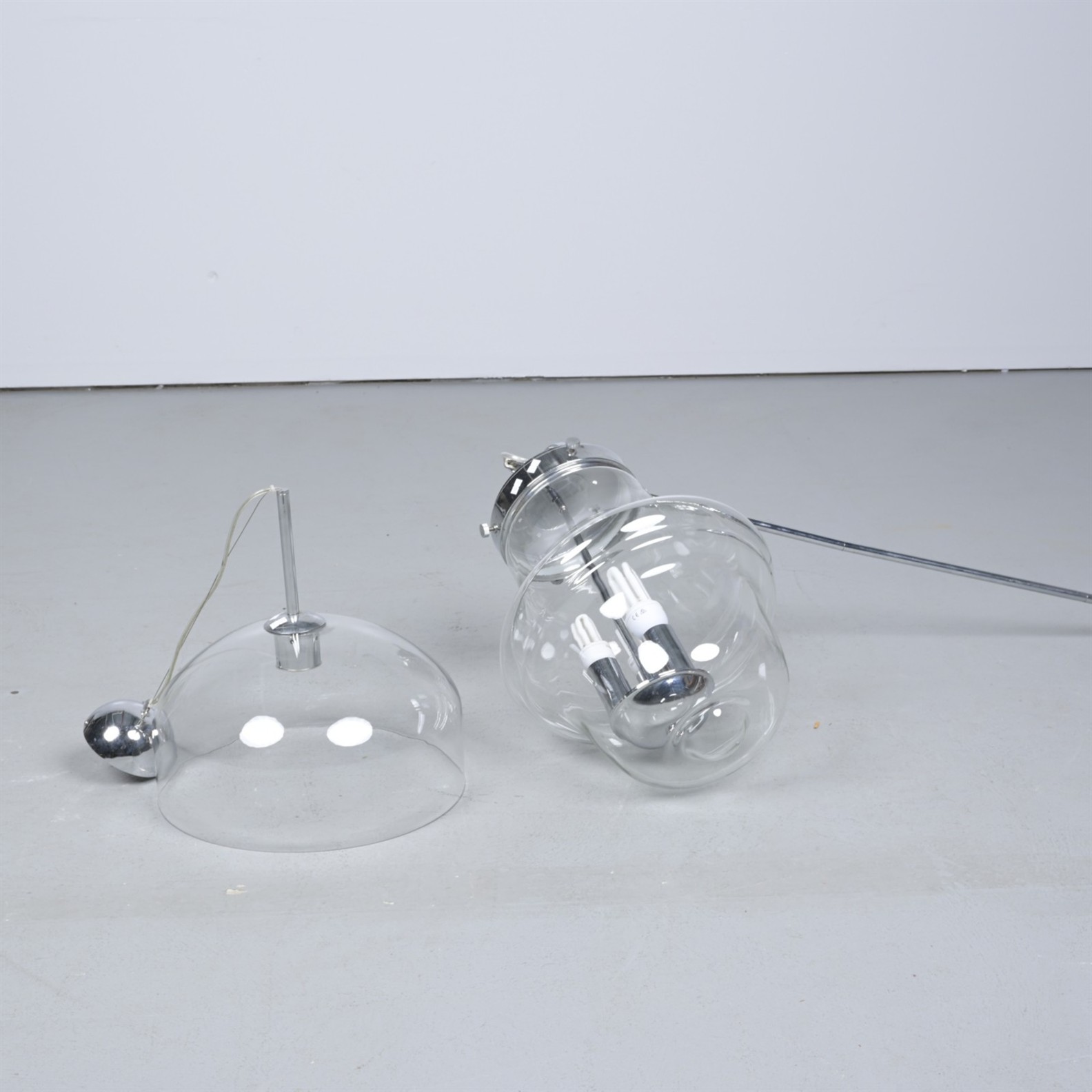 TWO GLASS PENDANT LIGHTS (72H X 48DIA CM, LARGEST)