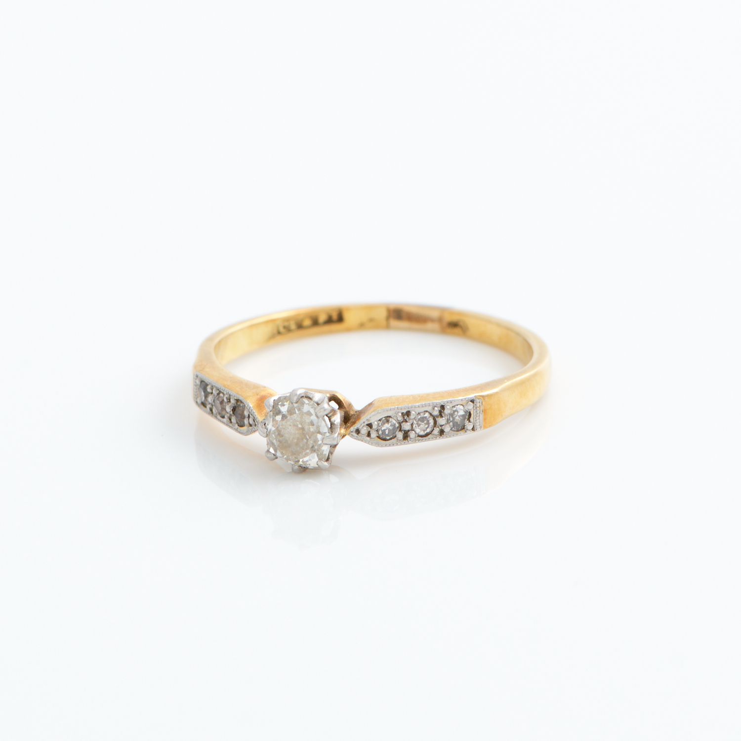 AN OLD CUT DIAMOND RING IN 17CT GOLD AND PLATINUM, SIZE P 1/2, 2.43GMS