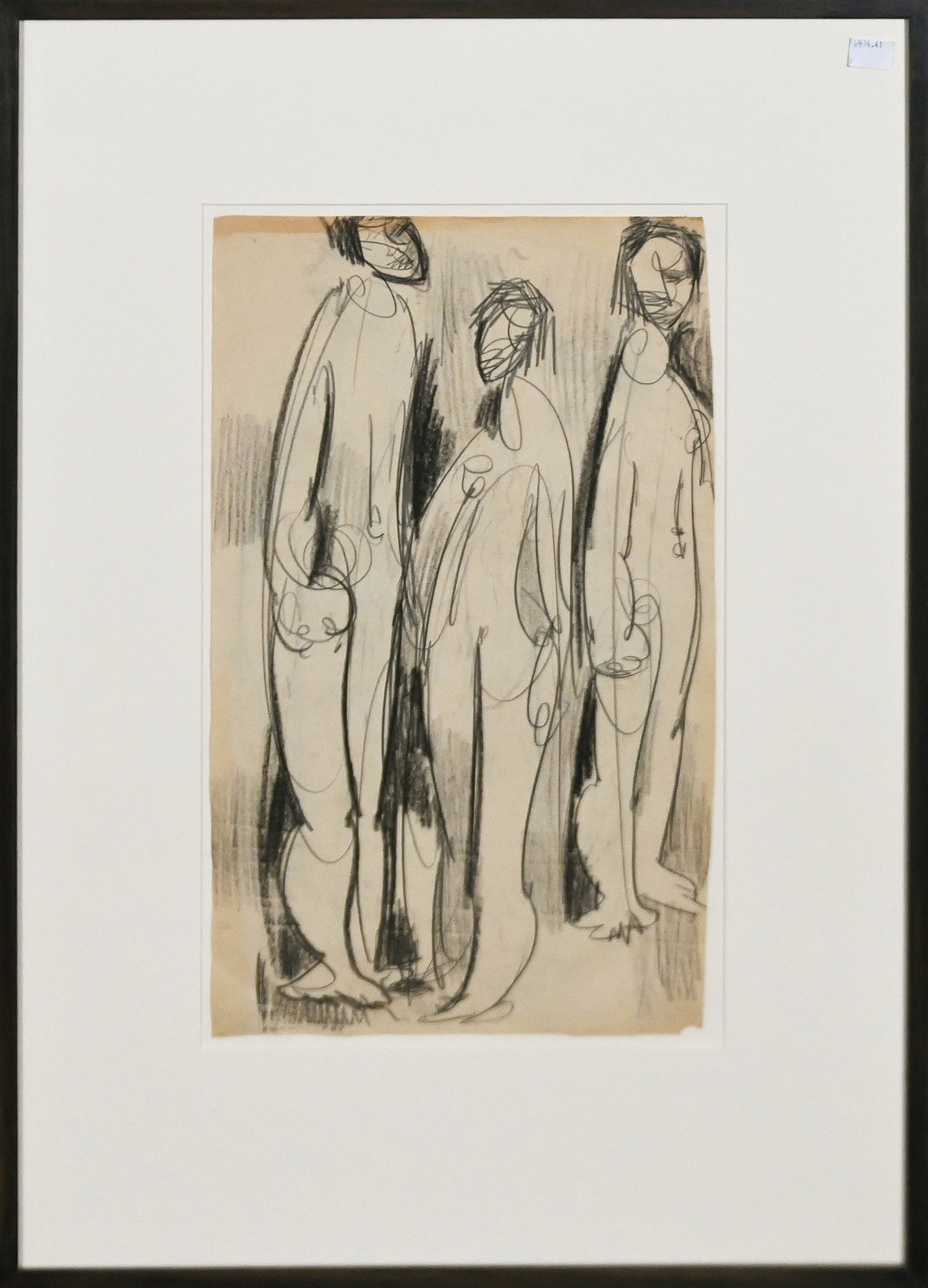 PENCIL AND CHARCOAL ON PAPER, UNSIGNED, 43.5 X 26.5CM (SHEET), FRAME SIZE: 69 X 50CM