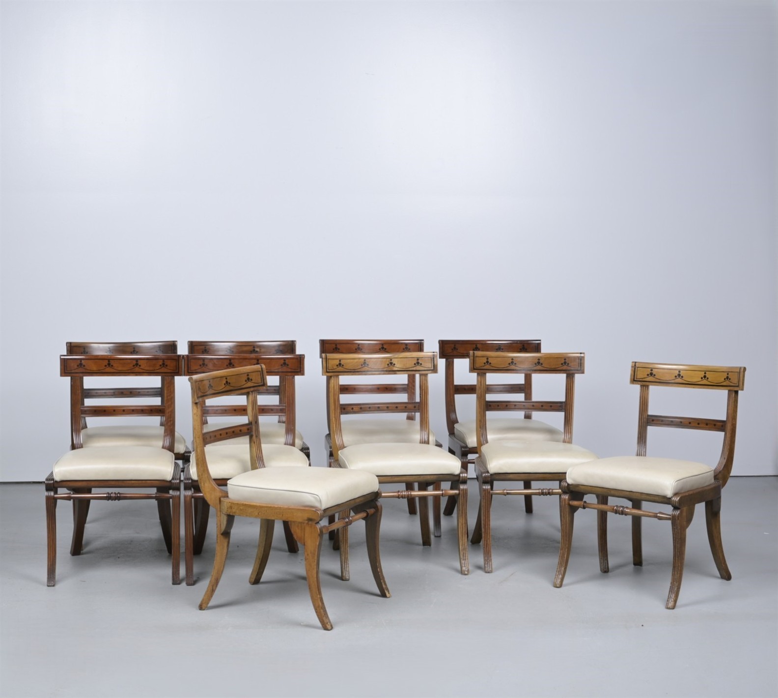 A SET OF TEN REGENCY-STYLE MAHOGANY DINING CHAIRS (A/F) (83H X 50W X 60D CM) (THIS ITEM MUST BE REMOVED BY PROFESSIONAL CARRIERS OR CLIENTS. LEONARD JOEL STAFF CANNOT ASSIST WITH CARRYING OR DELIVERY OF THIS ITEM)