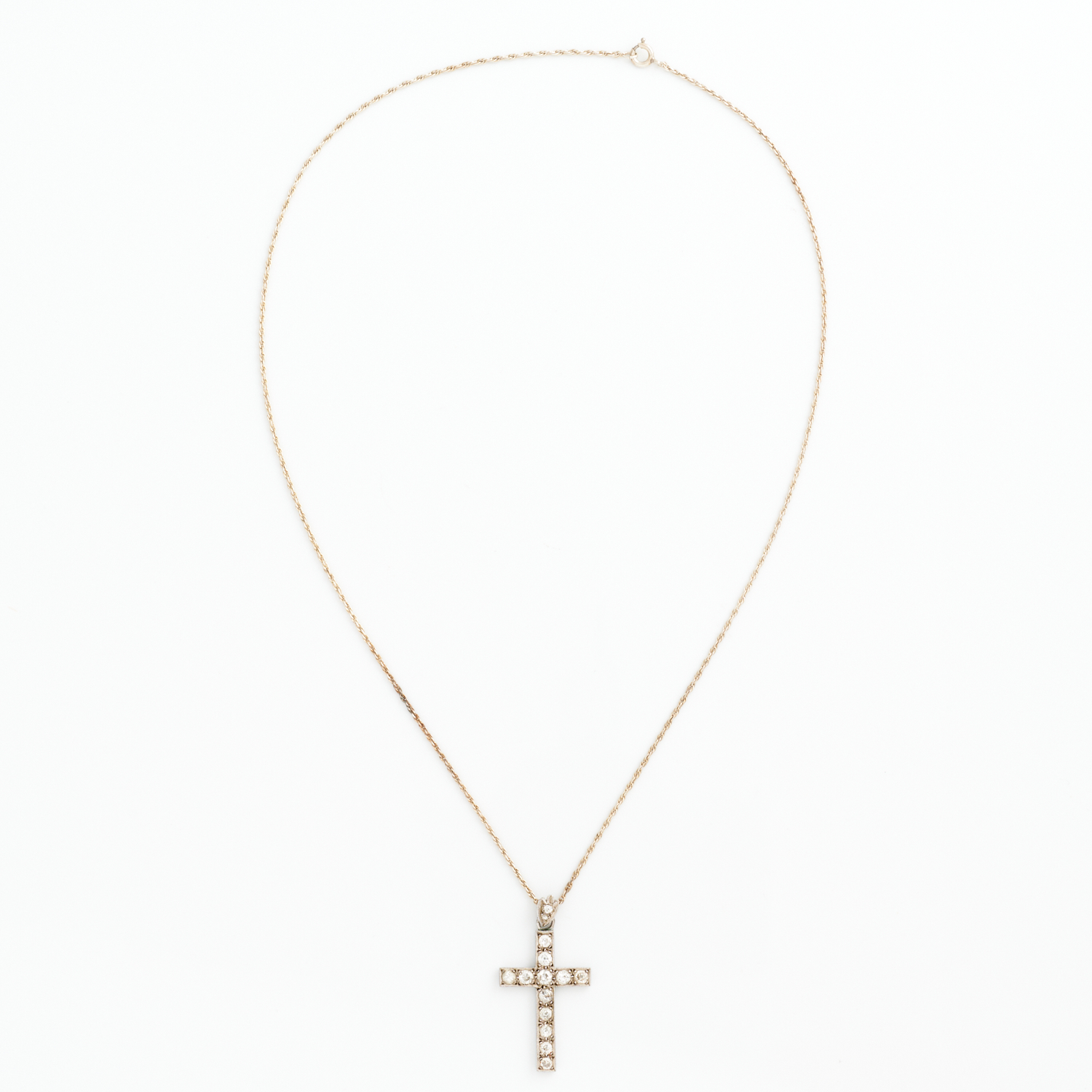 A DIAMOND CROSS PENDANT IN SILVER, 35MM X 20MM, TO A CHAIN IN STERLING SILVER, 480MM