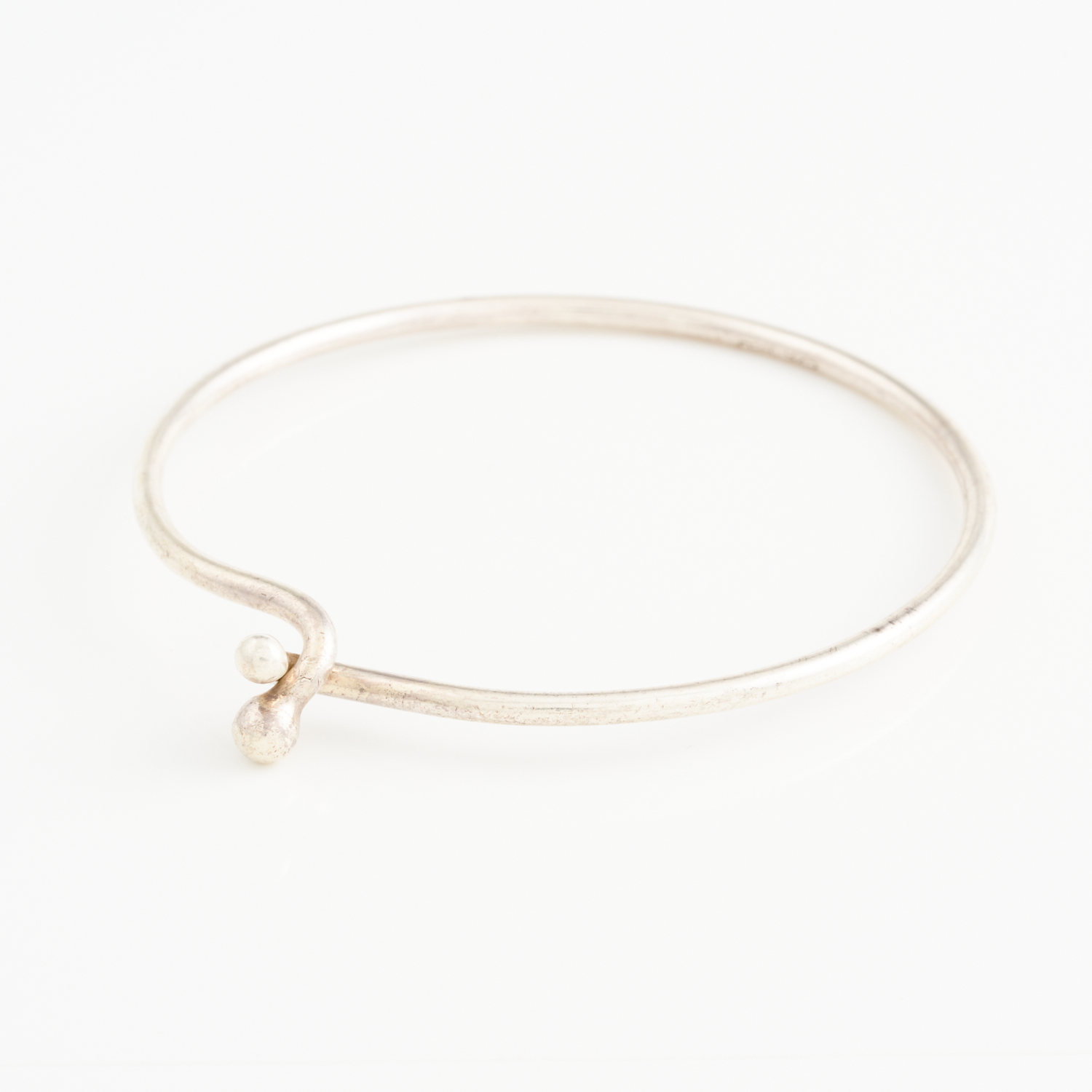 A BANGLE IN STERLING SILVER, INNER DIAMETER 55MM