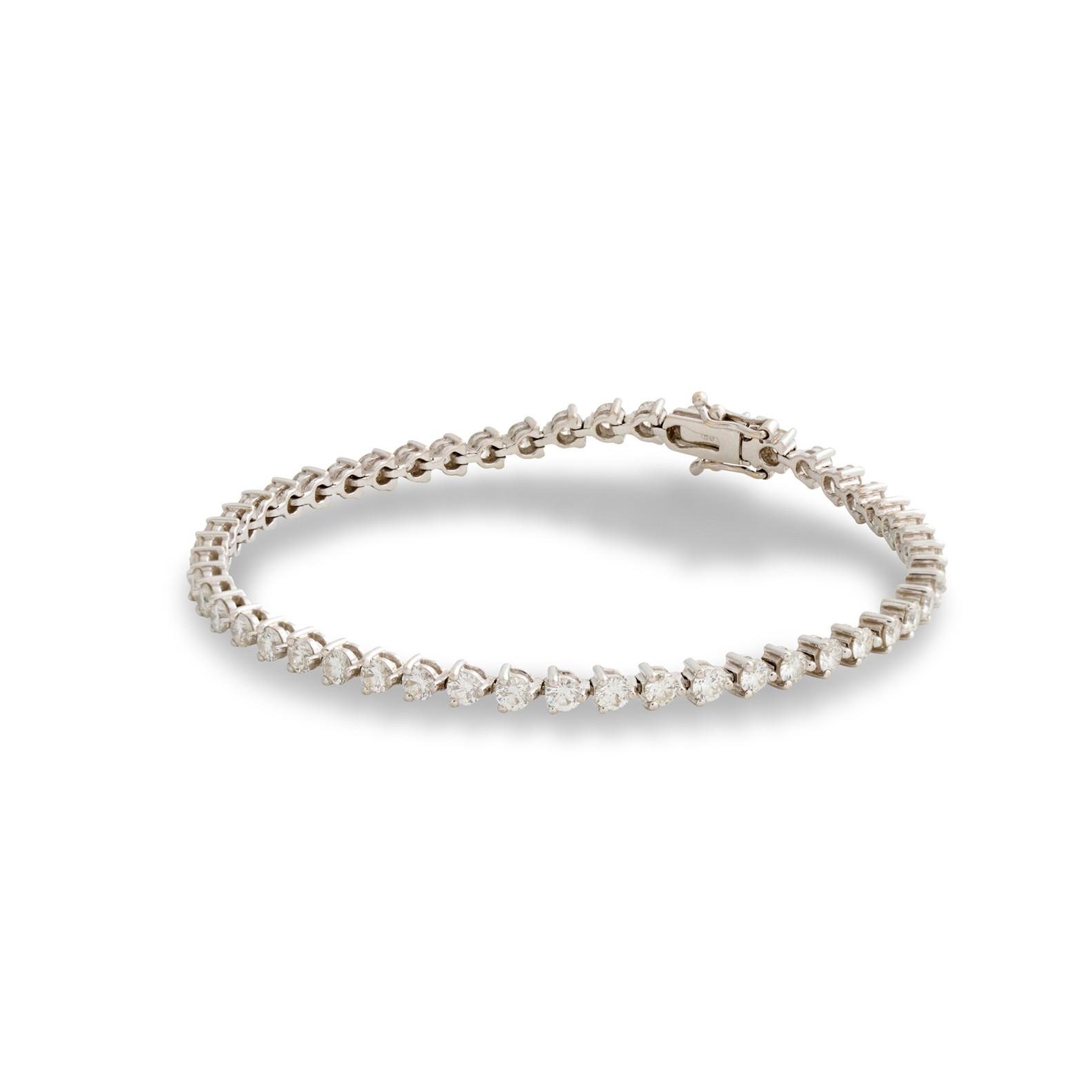 Composed as a line of 50 claw-set brilliant-cut diamonds completed by a concealed box clasp, the diamonds together weighing approximately 3.85 carats, mounted in 18ct white gold, length 185mm, gross weight approximately 10.9 grams.