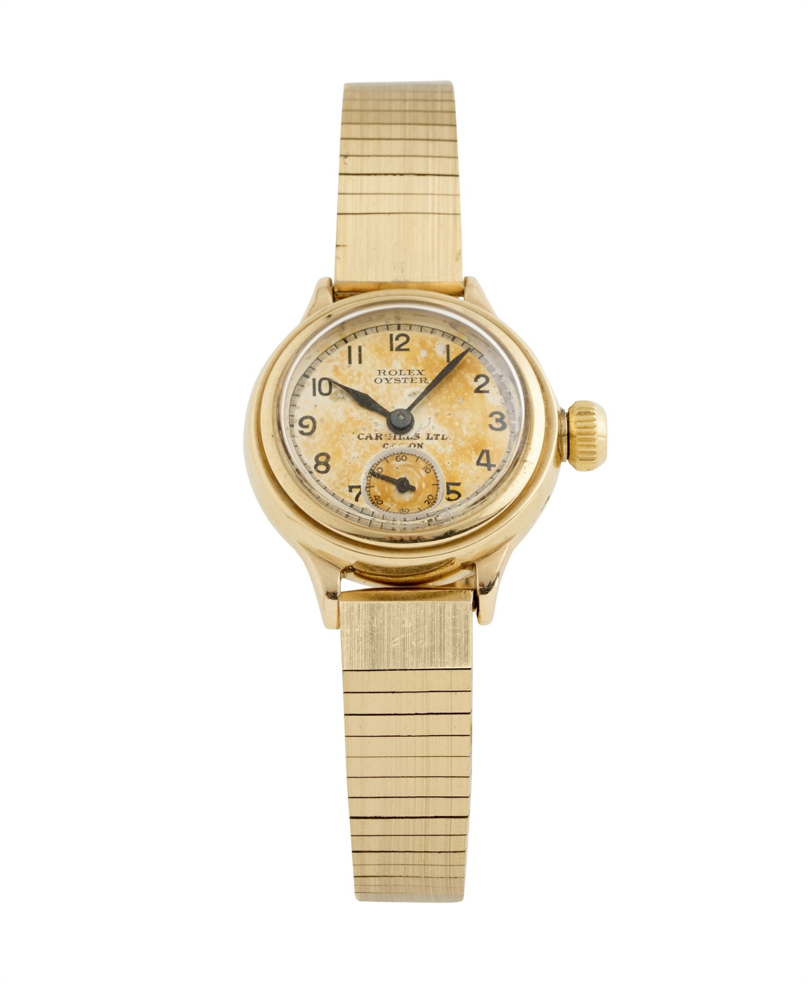 Dial: silver, Arabic numbers, subsidiary second dial at 6, signed Cargills LTD.