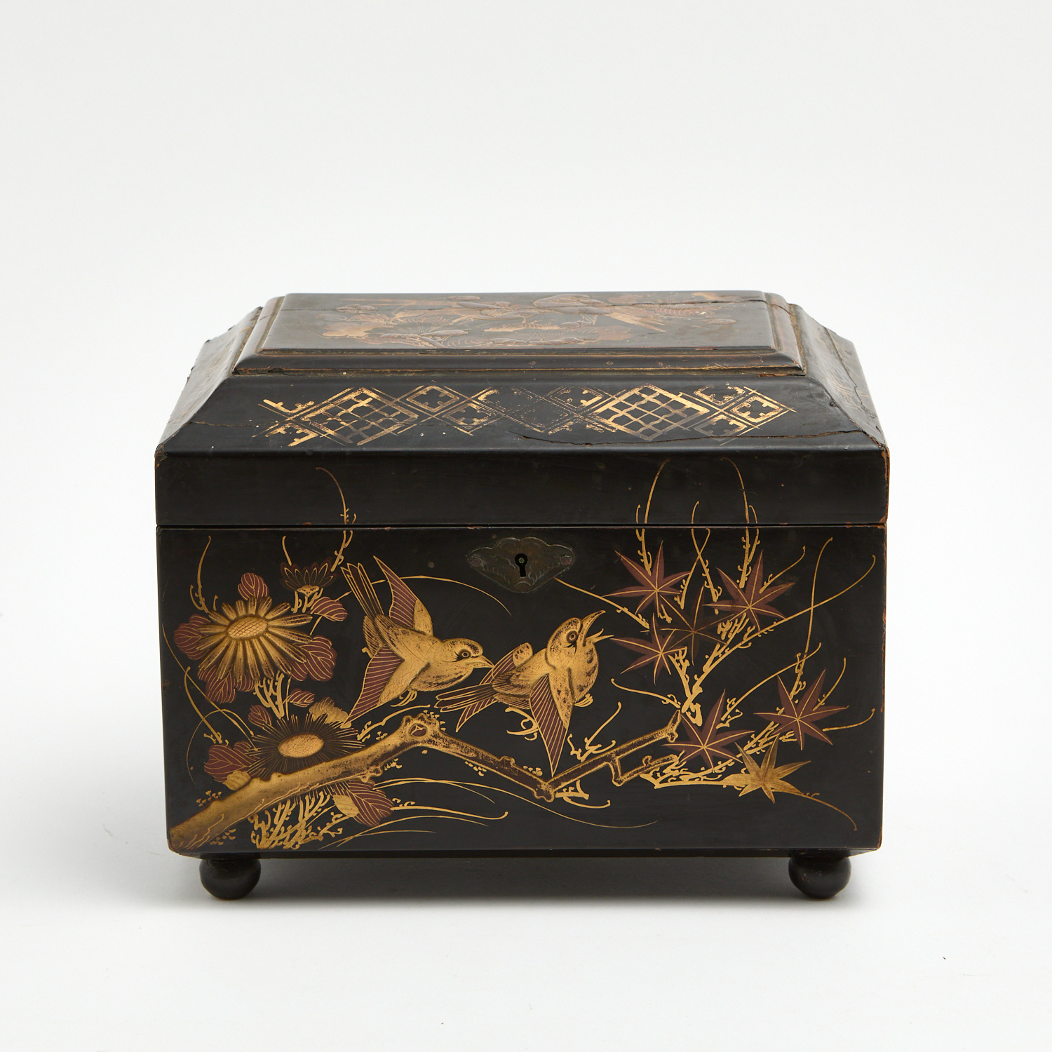 A MEIJI PERIOD LACQUER TEA CANNISTER (A/F) W.24CM