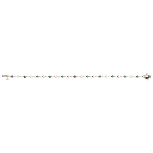 Comprising twenty-three alternating white round brilliant-cut diamonds and treated blue round brilliant-cut diamonds, separated by domed oval bars, the diamonds together weighing approximately 0.25 carats, completed by a snap lock clasp,