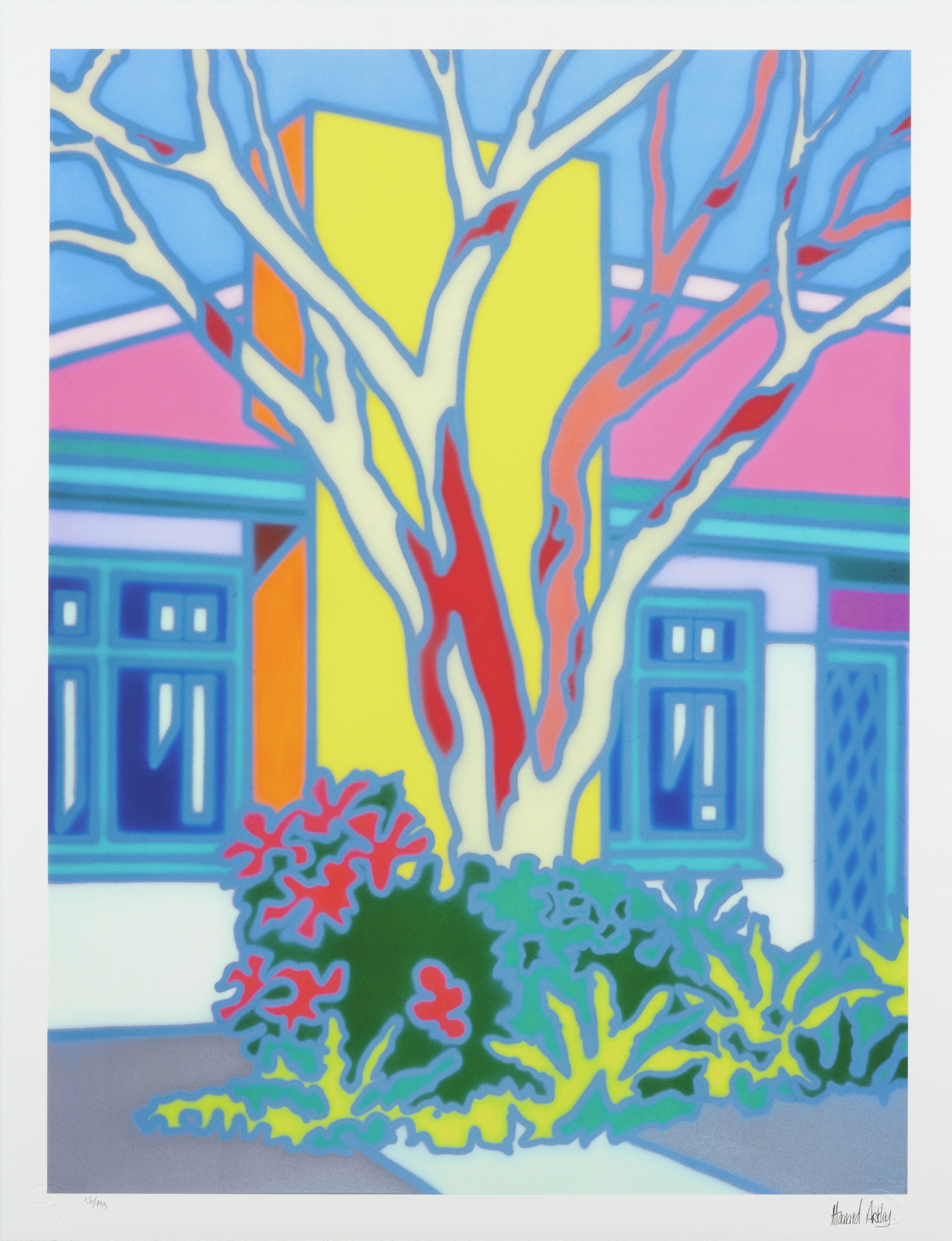 Howard Arkley, House with Native Tree 1996, synthetic polymer paint on canvas, 203 x 153cm, private collection, Melbourne