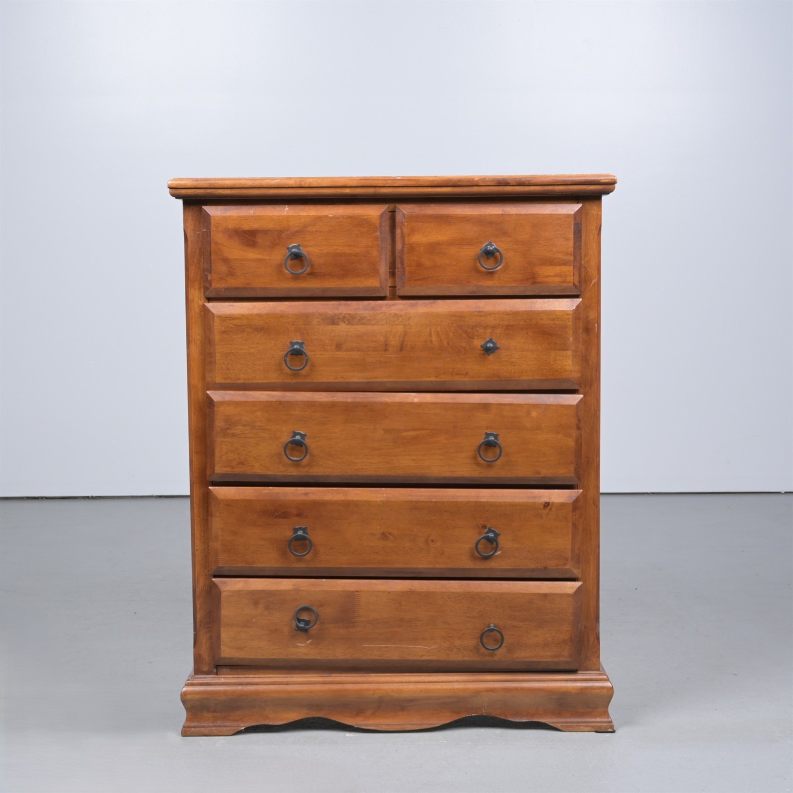 A HARDWOOD CHEST OF DRAWERS IN ANTIQUE MANNER (A/F) (109H X 85W X 46D CM) (THIS ITEM MUST BE REMOVED BY PROFESSIONAL CARRIERS OR CLIENTS. LEONARD JOEL STAFF CANNOT ASSIST WITH CARRYING OR DELIVERY OF THIS ITEM)