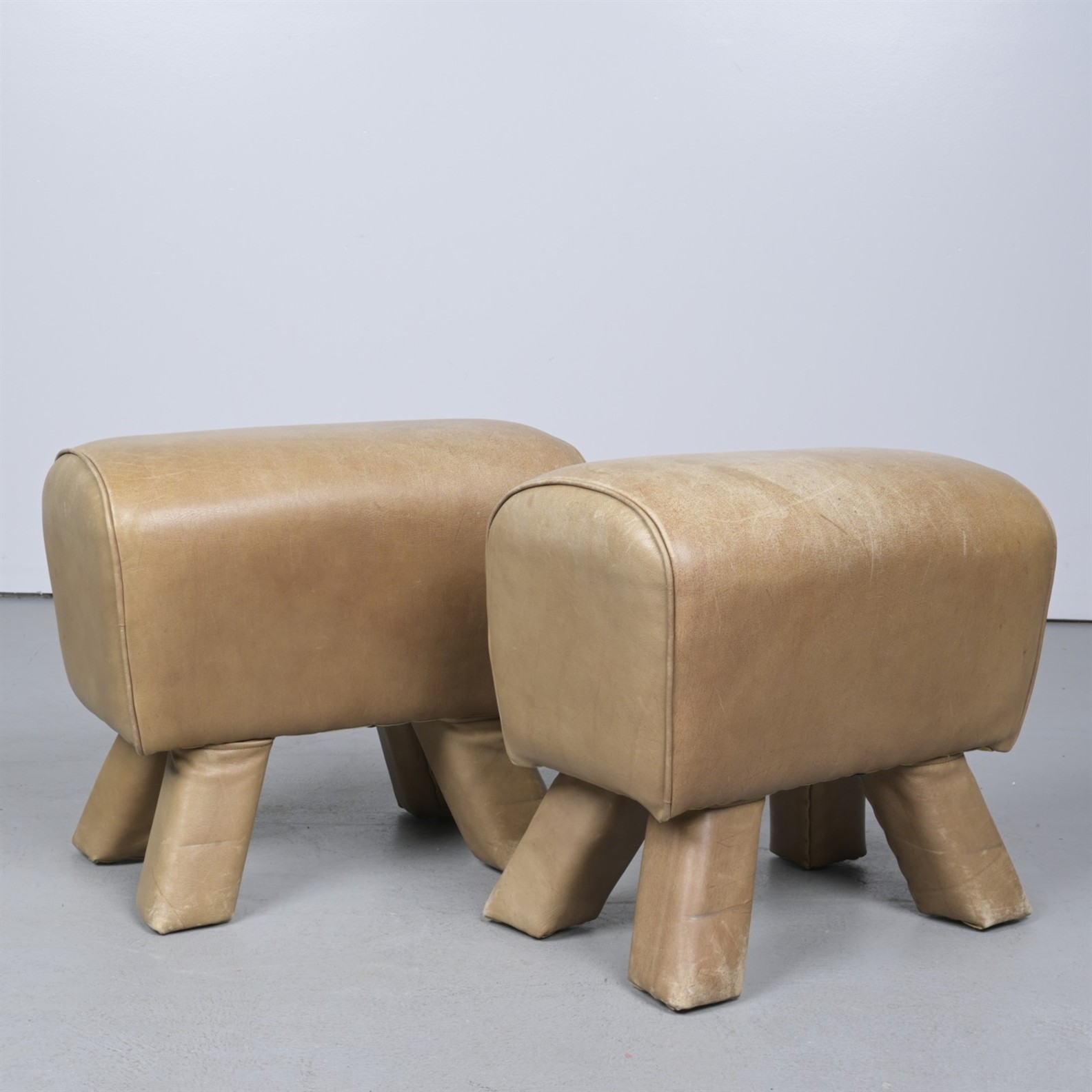 A PAIR OF LEATHER 'GYM HORSE' BENCHES BY TIMOTHY OULTON (55H X 63W X 33D CM)