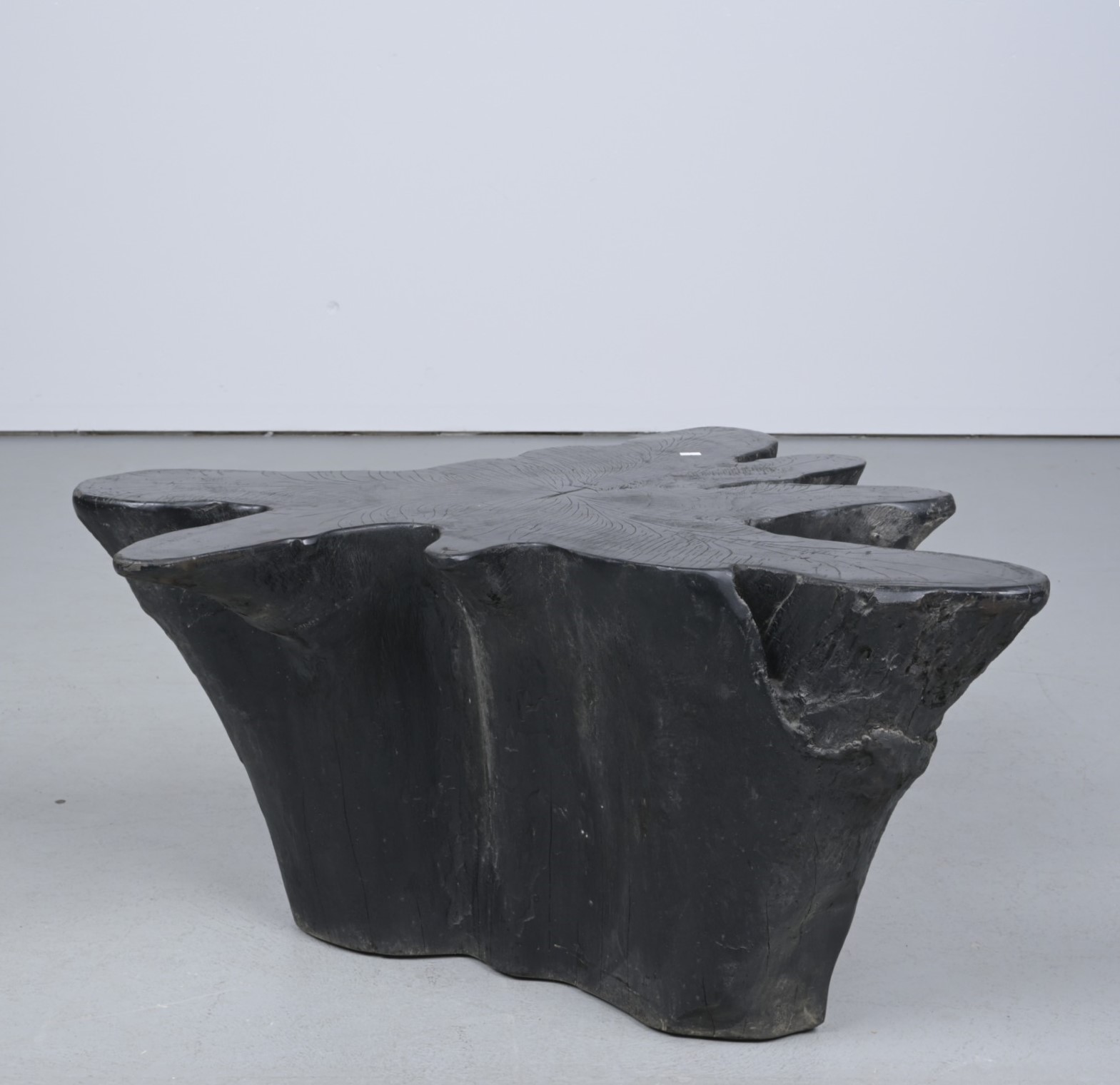 A STAINED HARDWOOD COFFEE TABLE (47CM H 95CM W, IRREGULAR EDGES) (THIS ITEM MUST BE REMOVED BY PROFESSIONAL CARRIERS OR CLIENTS. LEONARD JOEL STAFF CANNOT ASSIST WITH CARRYING OR DELIVERY OF THIS ITEM)