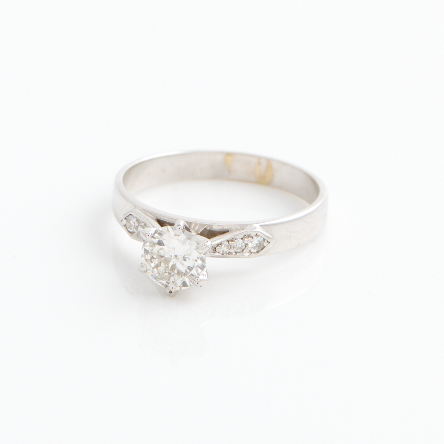 A DIAMOND RING IN 18CT WHITE GOLD AND PLATINUM, THE DIAMOND WEIGHING APPROXIMATELY 0.66CTS, SIZE N, 2.9GMS
