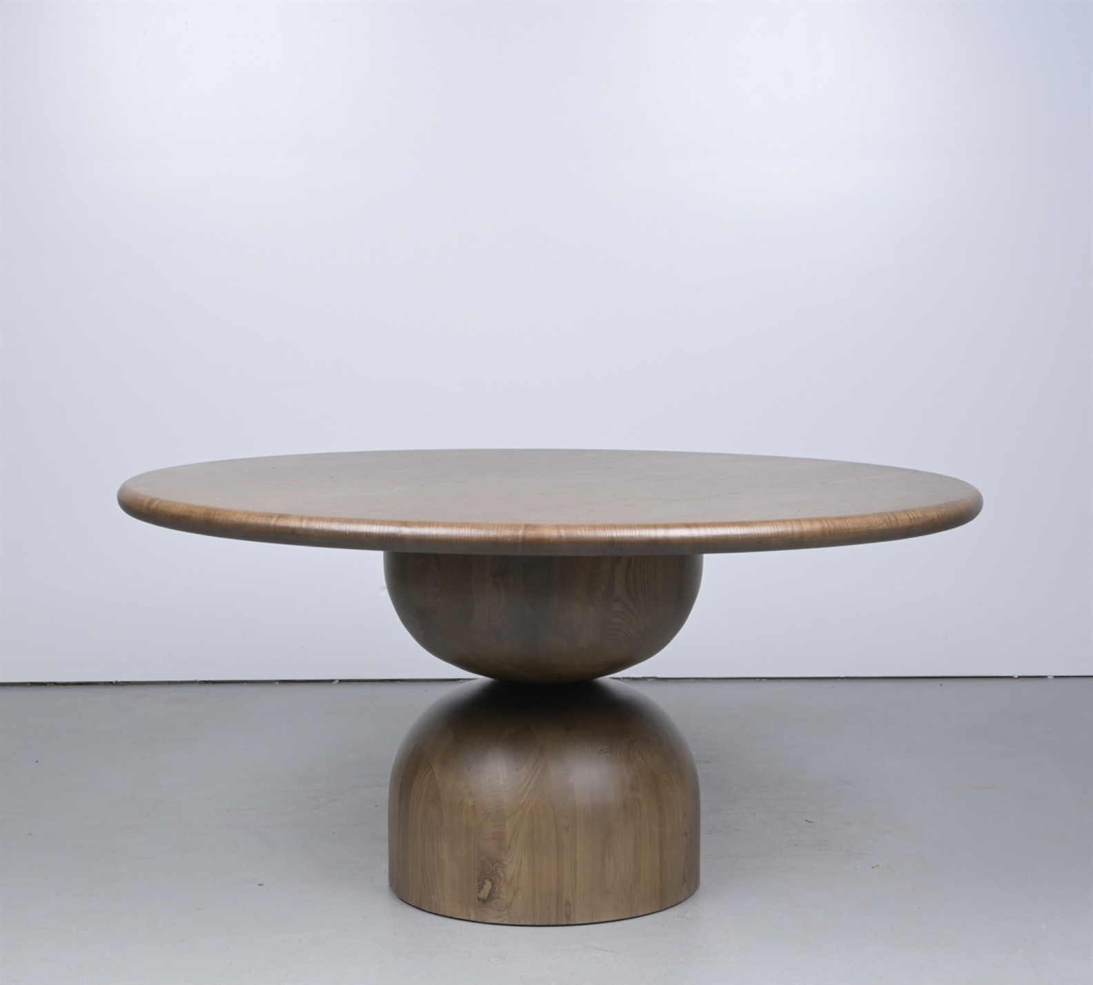 A LARGE CONTEMPORARY HARDWOOD CIRCULAR TABLE (78H X 160DIA CM) (THIS ITEM MUST BE REMOVED BY PROFESSIONAL CARRIERS OR CLIENTS. LEONARD JOEL STAFF CANNOT ASSIST WITH CARRYING OR DELIVERY OF THIS ITEM)