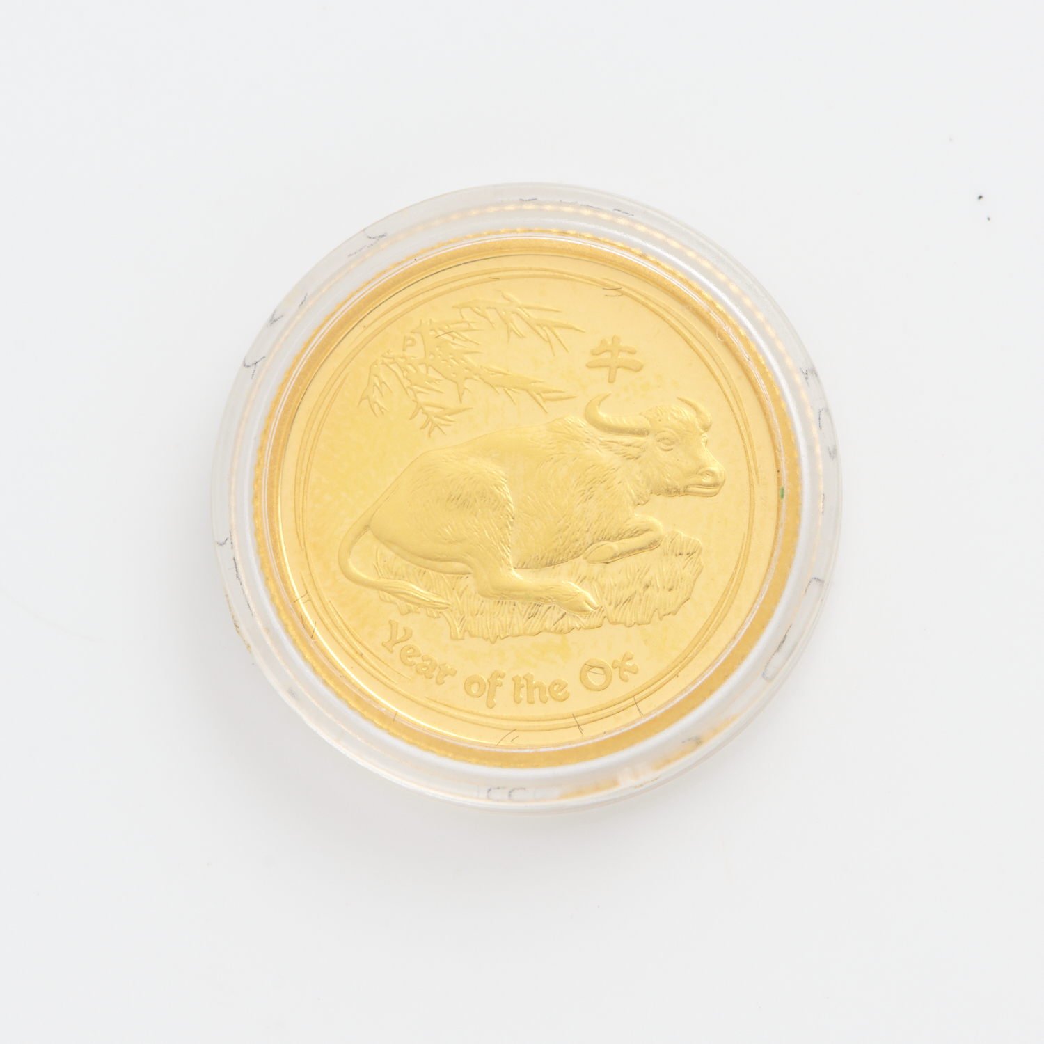 A COMMEMORATIVE COIN IN 24CT GOLD, 3.1GMS
