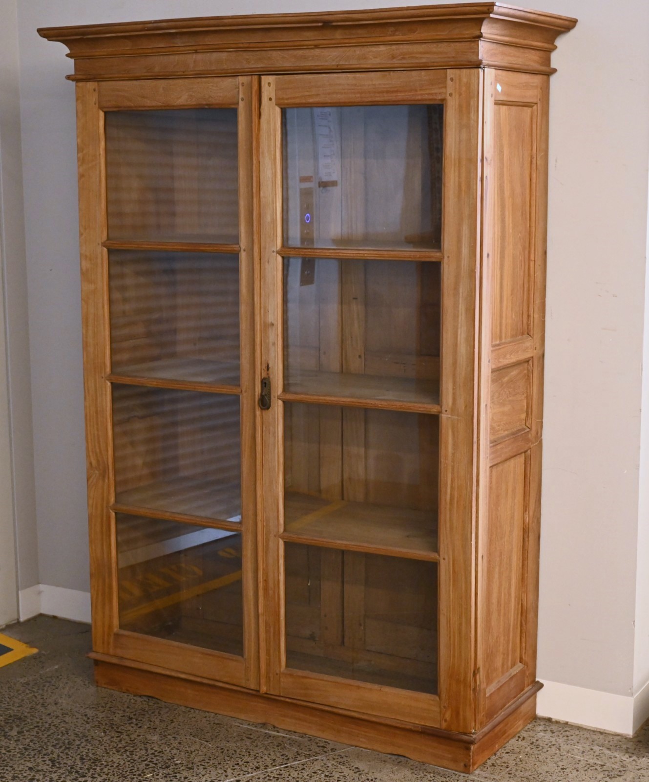 AN AUSTRALIAN CEDAR AND GLAZED BOOKCASE (175CM H X 127CM W X 47CM D) (THIS ITEM MUST BE REMOVED BY PROFESSIONAL CARRIERS OR CLIENTS. LEONARD JOEL STAFF CANNOT ASSIST WITH CARRYING OR DELIVERY OF THIS ITEM)