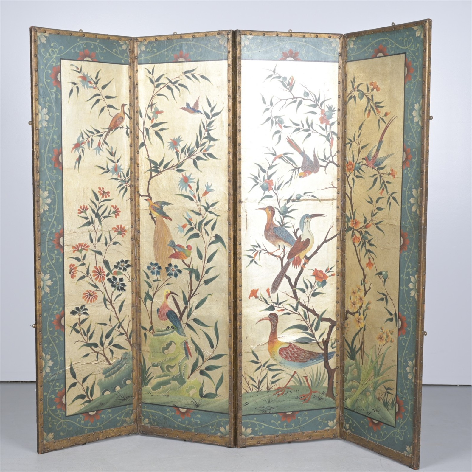 AN ANTIQUE-STYLE DECORATED FOUR-LEAF SCREEN (A/F) (199CM H 53CM W, PANEL) (PLEASE NOTE THERE MAY BE SOME COLOUR VARIATION FROM PHOTOGRAPH)