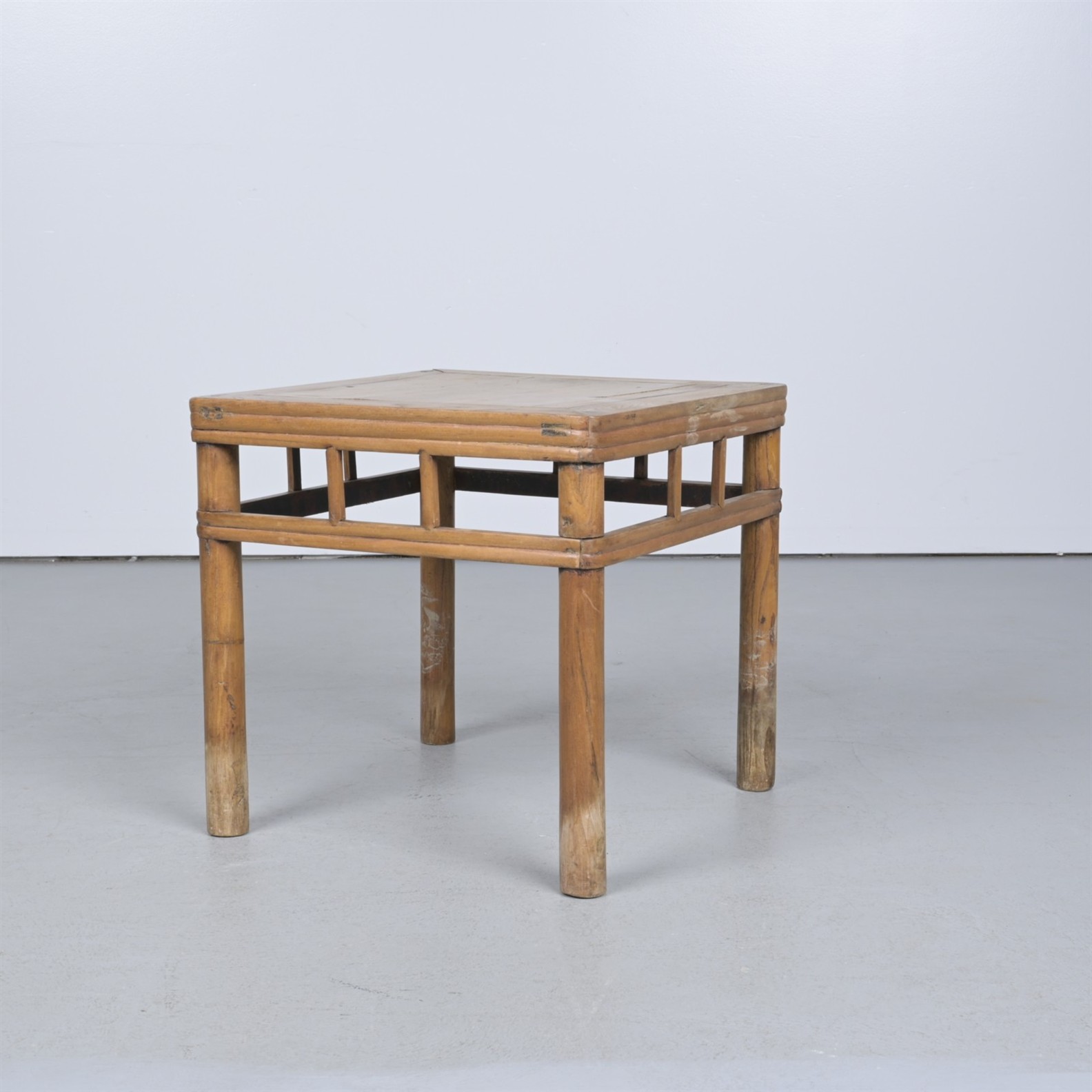 A 19th CENTURY CHINESE ELM LOW TABLE (52CM H X 54CM W X 54CM D)