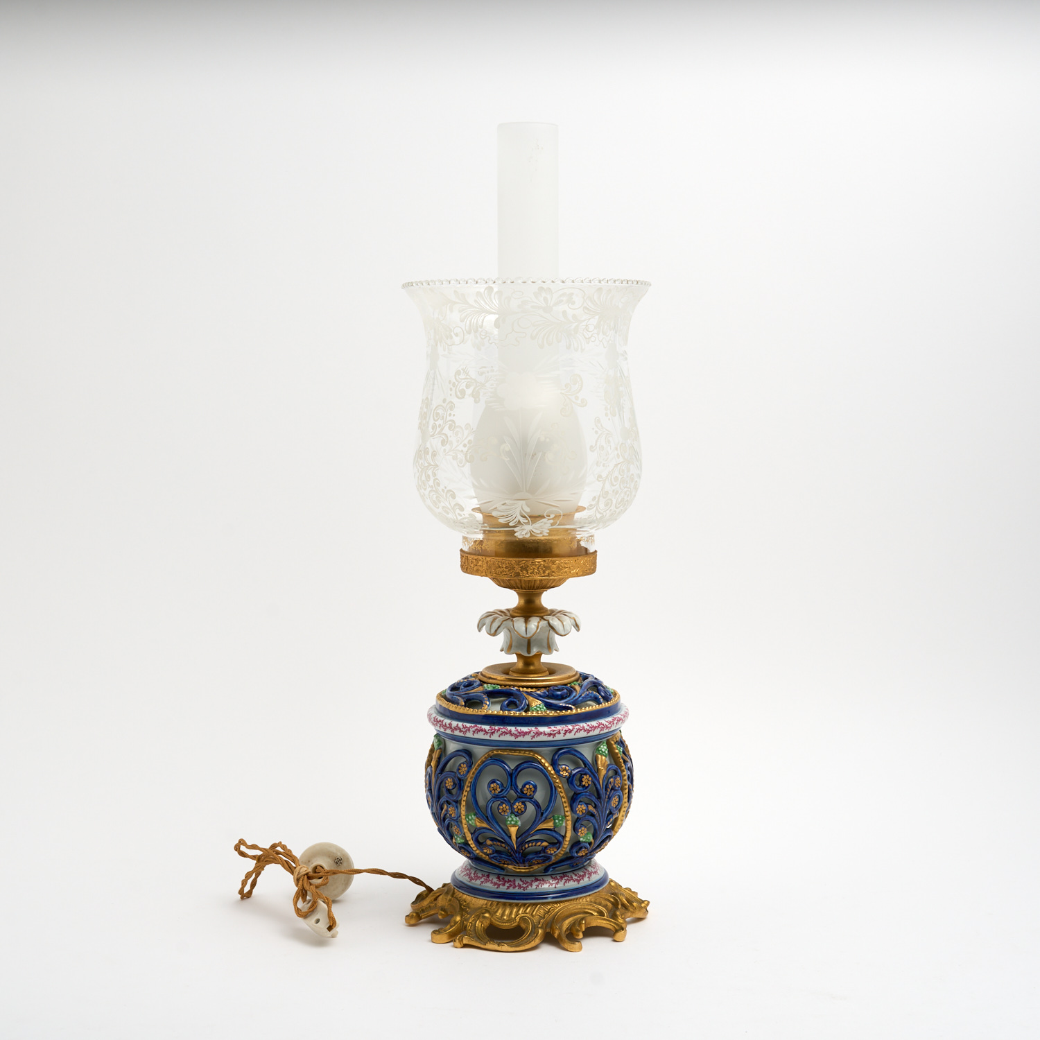 AN ITALIAN HAND PAINTED CERAMIC LAMP