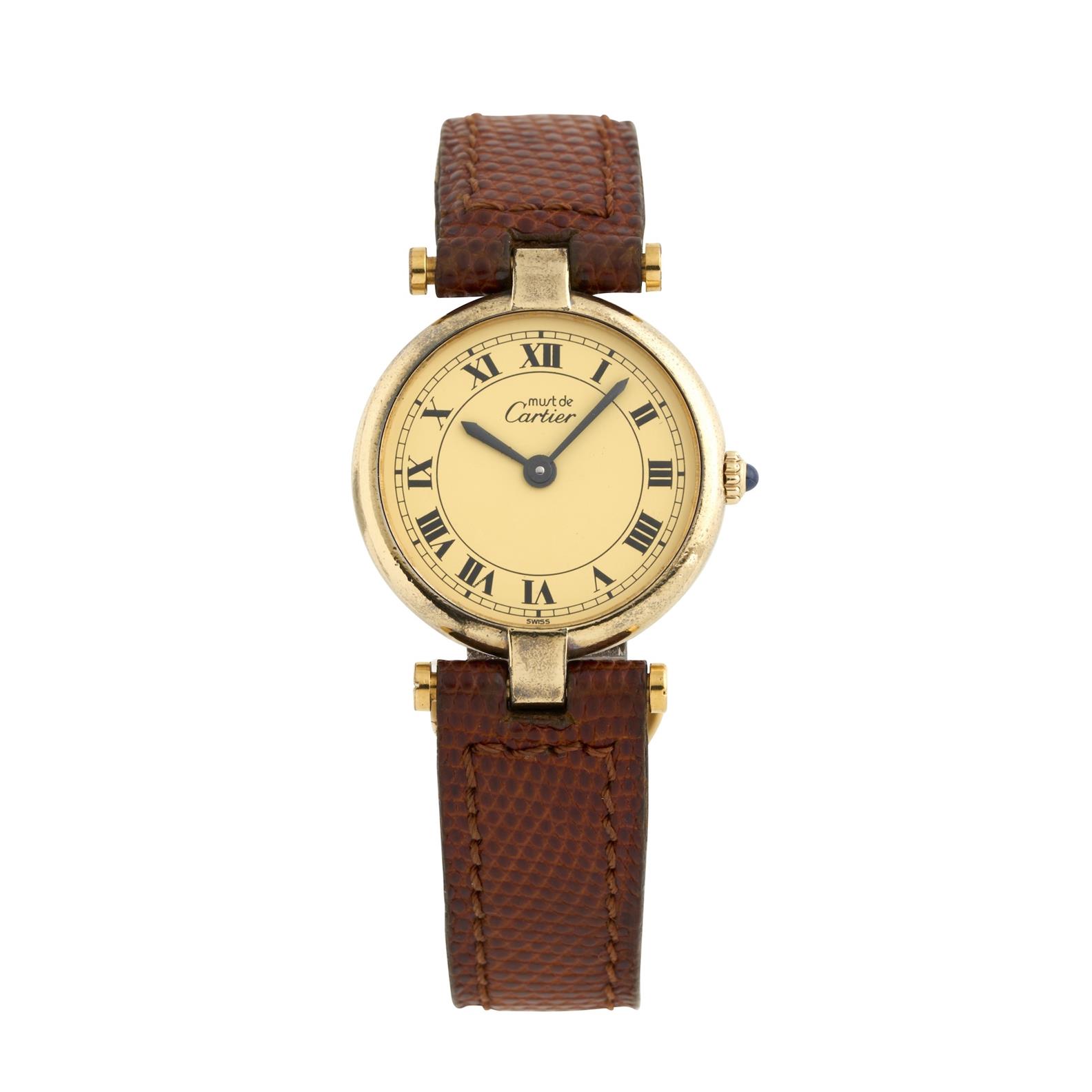 Bracelet/Strap: brown Cartier leather strap, pin buckle, maximum length 185mm