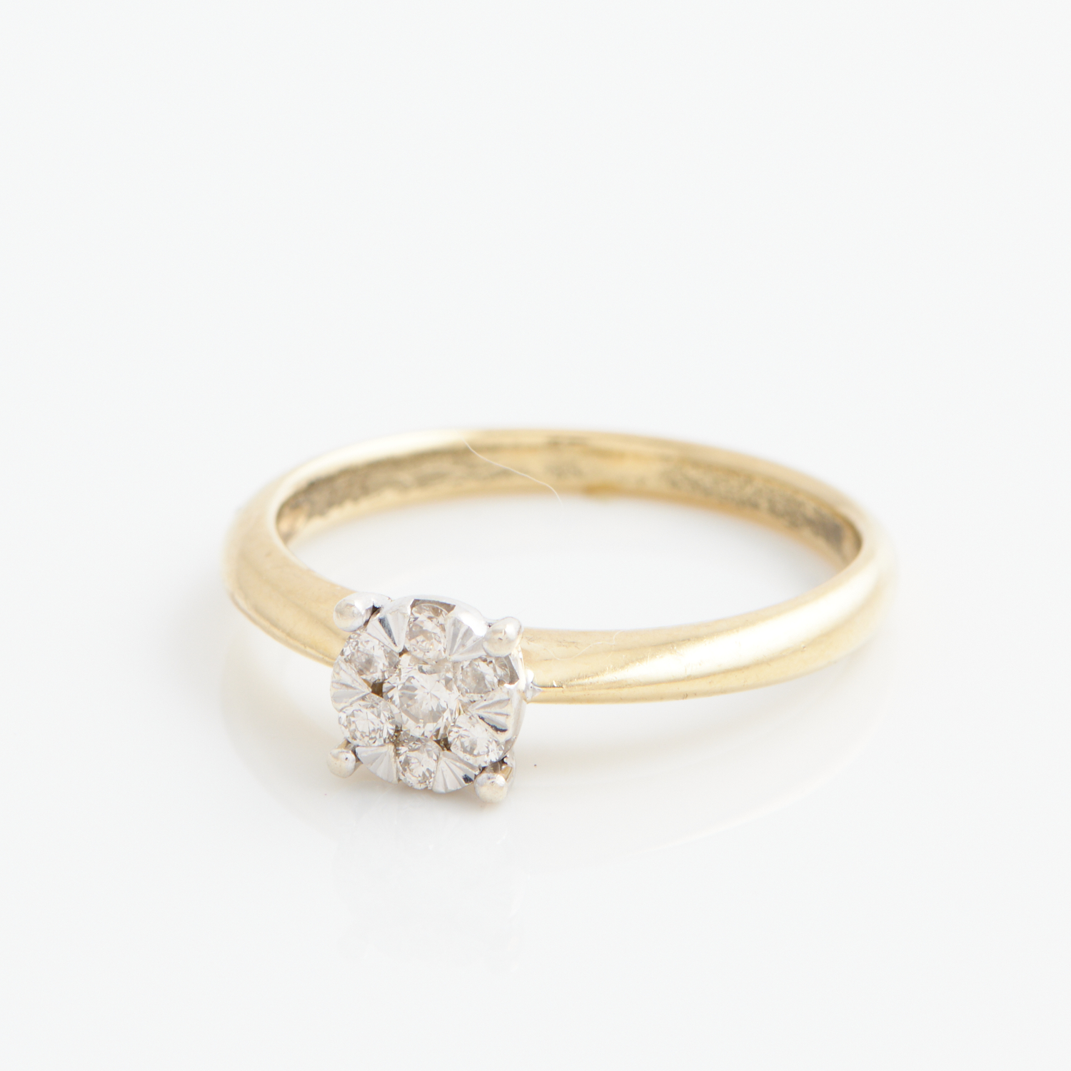 A CLUSTER DIAMOND RING IN 9CT GOLD, SIZE O 1/2, 2.5GMS