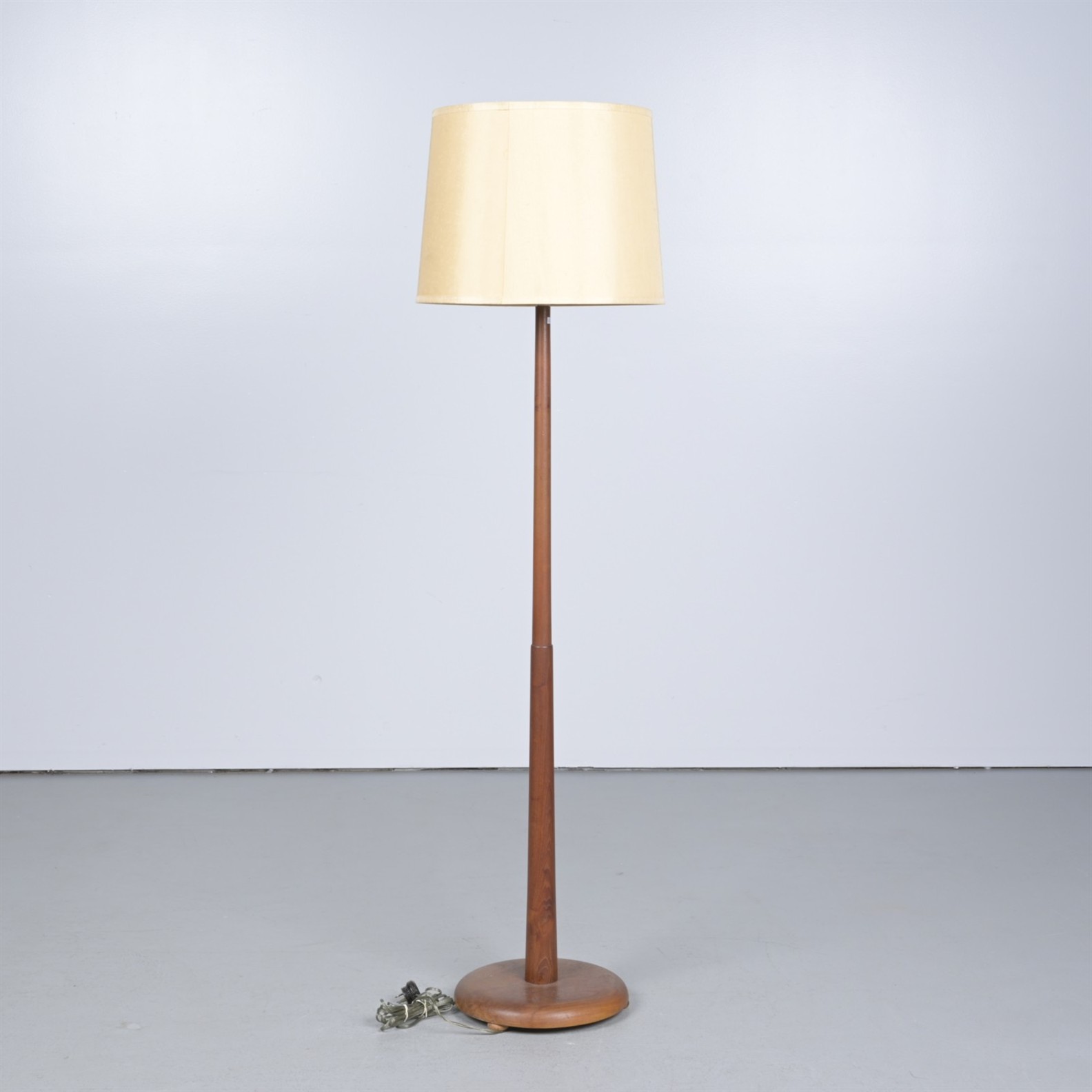 A MID-20th CENTURY TEAK STANDARD LAMP (171CM H 46CM DIA)