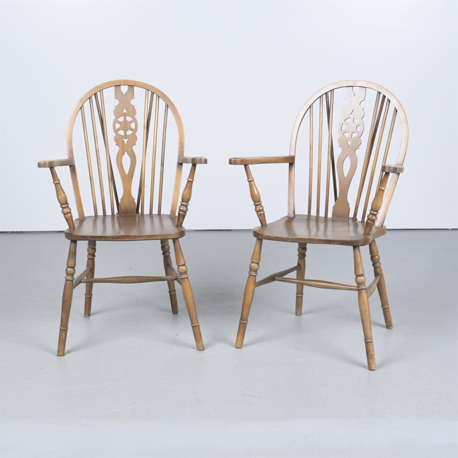 A PAIR OF WINDSOR-STYLE CHAIRS (98CM H X 60CM W X 54CM D)