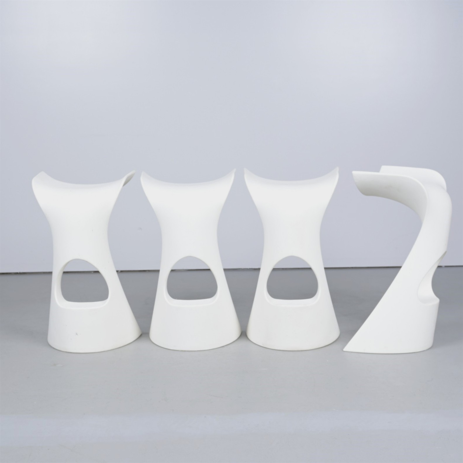 A SET OF FOUR ACRYLIC ITALIAN 'SLIDE' STOOLS DESIGNED BY KARIM RASHID (77CM H X 42CM W X 36CM D)