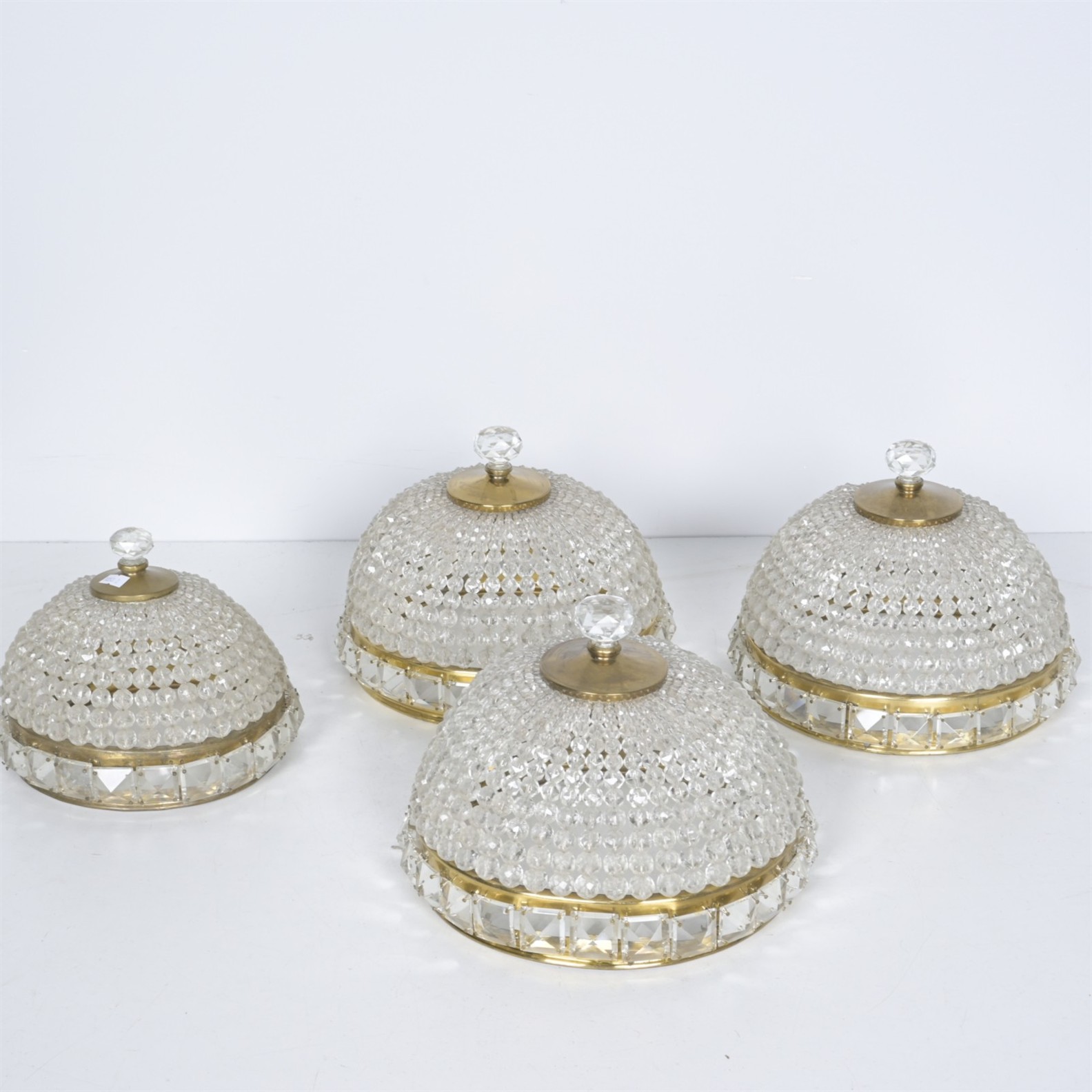A GROUP OF FOUR EARLY 20TH CENTURY CONTINENTAL CRYSTAL BASKET CEILING LIGHTS (20H X 29DIA CM, LARGEST)