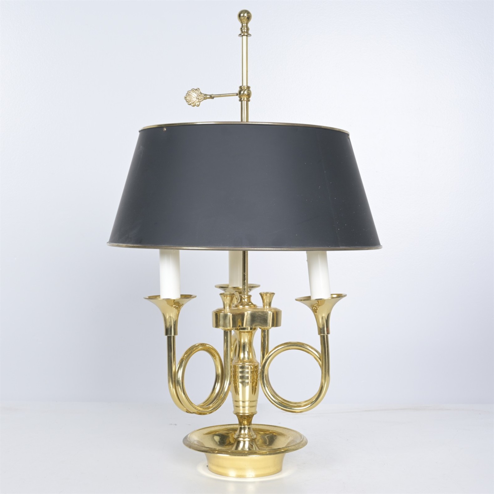 A BRASS BOUILLOTTE-TYPE TABLE LAMP (72CM H X 38CM DIA)