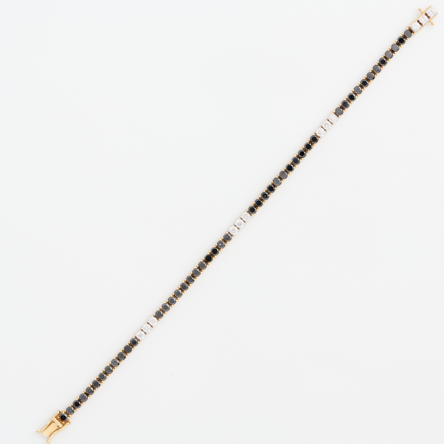 A BLACK DIAMOND BRACELET IN 14CT GOLD, THE BLACK DIAMOND TOTALLING 4.30CT, THE WHITE DIAMOND TOTALLING 0.91CT, 175MM, TOTAL WEIGHT 8.61GMS