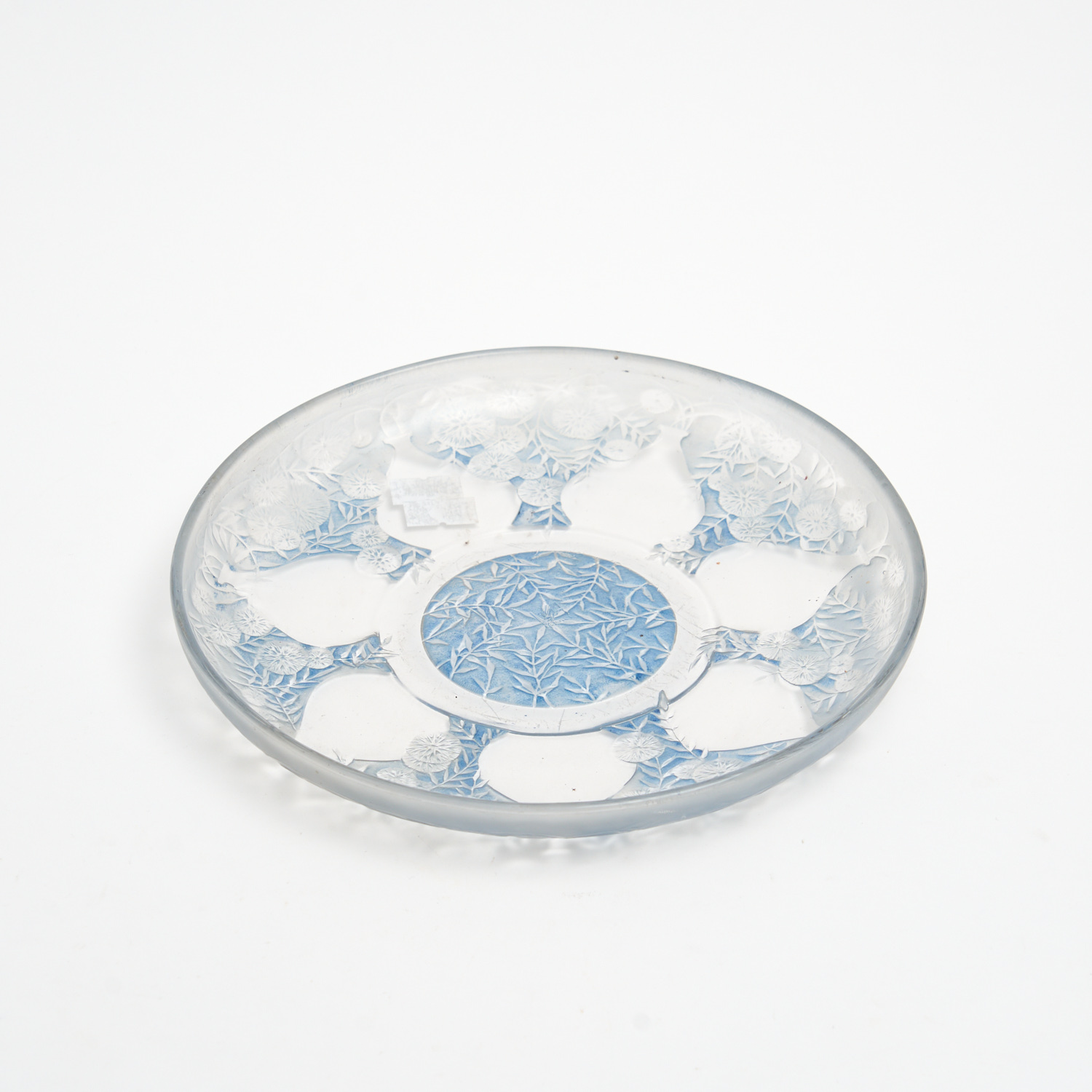 A RENE LALIQUE 'VASES' PLATE C.1920S, IMPRESSED MARK TO CENTRE DIA.21.5CM (A/F SCRATCHES)