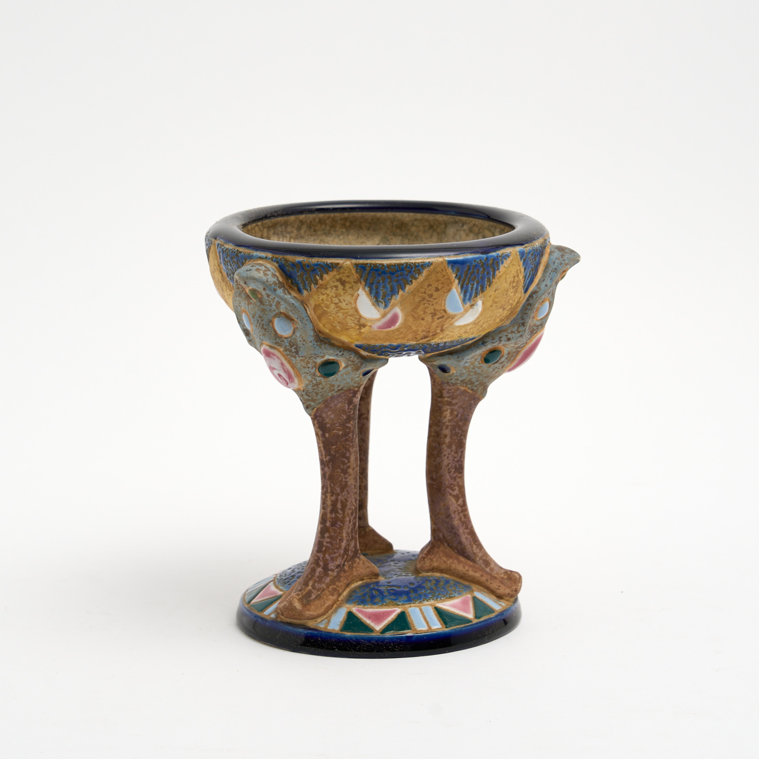 A CZECHOSLOVAKIAN AMPHORA TRI-FOOTED COMPORT H.18CM