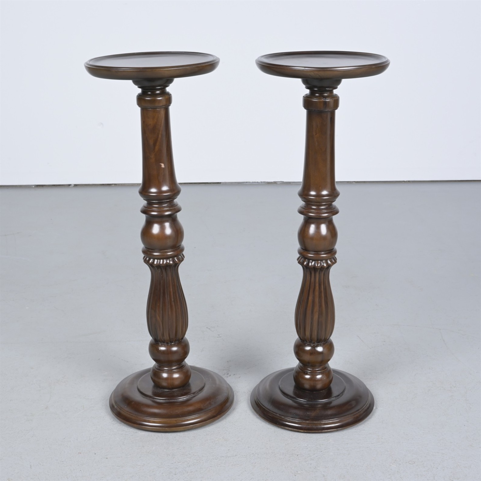 A PAIR OF CLASSICAL-STYLE HARDWOOD PEDESTALS (80CM H X 28CM DIA)
