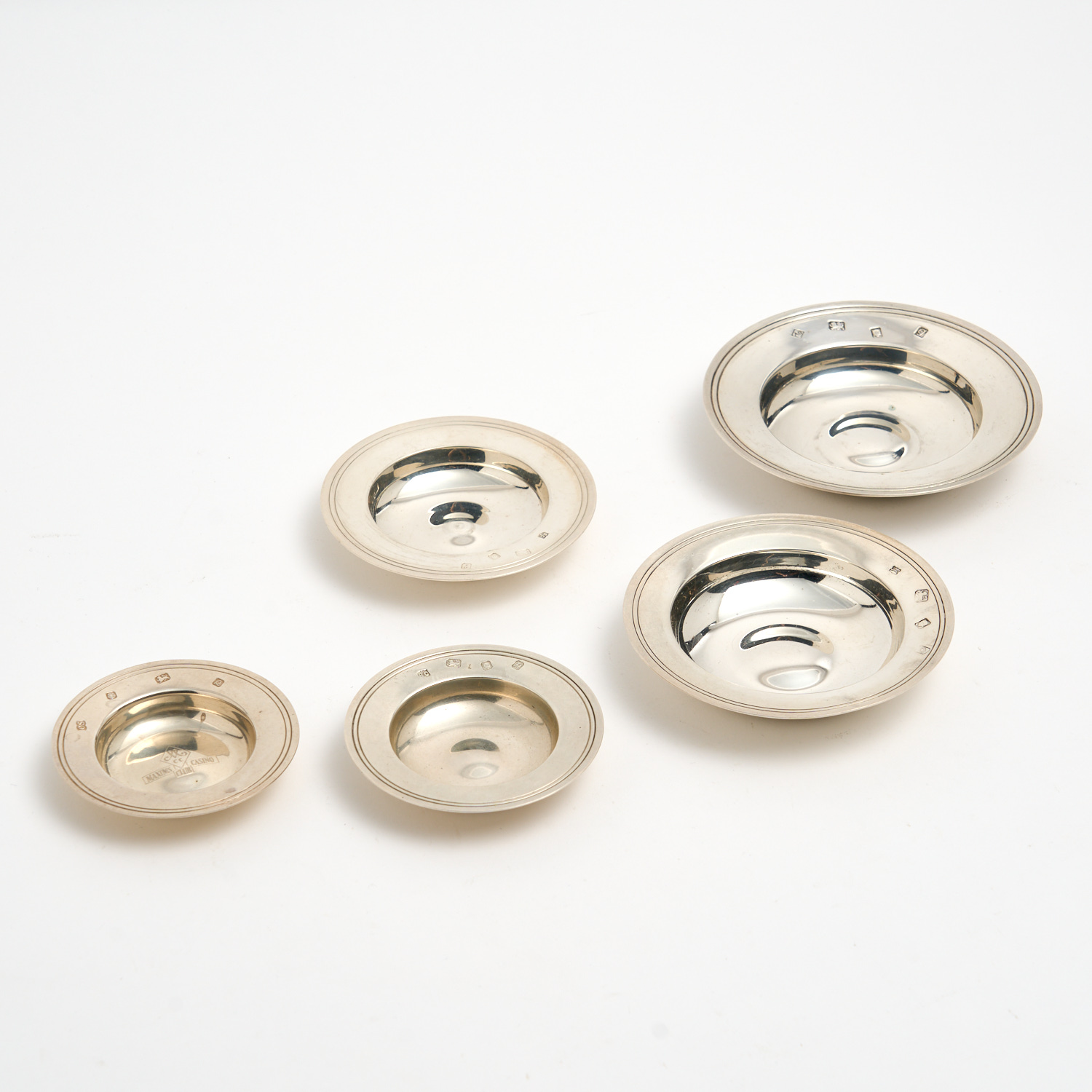 A GRADUATED SET OF STERLING SILVER ASHTRAYS 362G DIA.12CM (LARGEST)