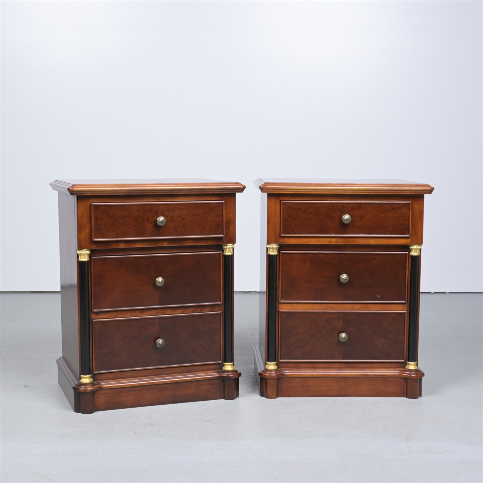 A PAIR OF MAHOGANY CLASSICAL-STYLE BEDSIDE CHESTS (76CM H X 60CM W X 45CM D)