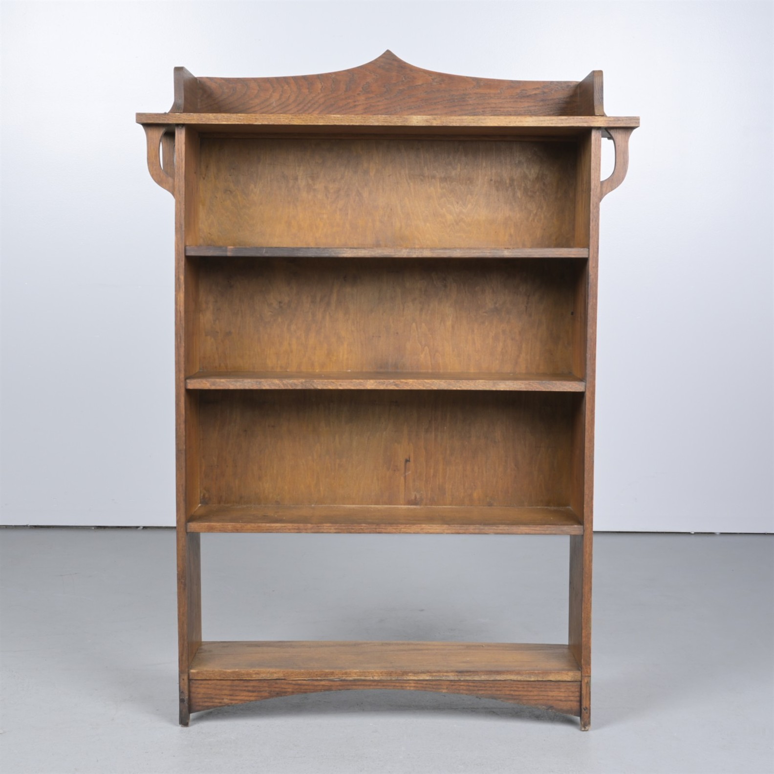 AN ARTS AND CRAFTS ENGLISH OAK BOOKCASE (A/F) (151CM H X 107CM W X 28CM D)