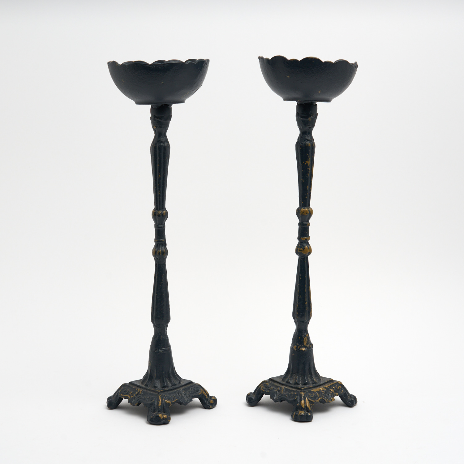 A PAIR OF CAST IRON CANDLE HOLDERS H.40CM