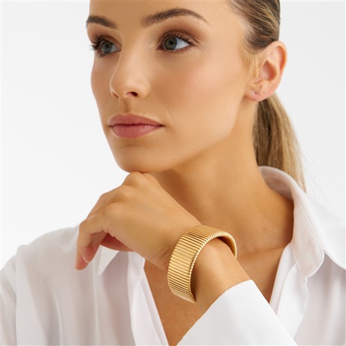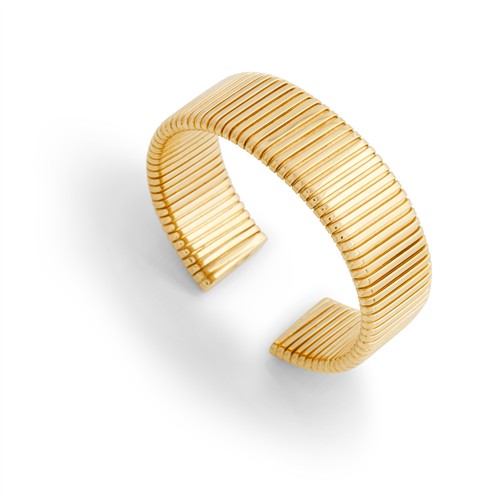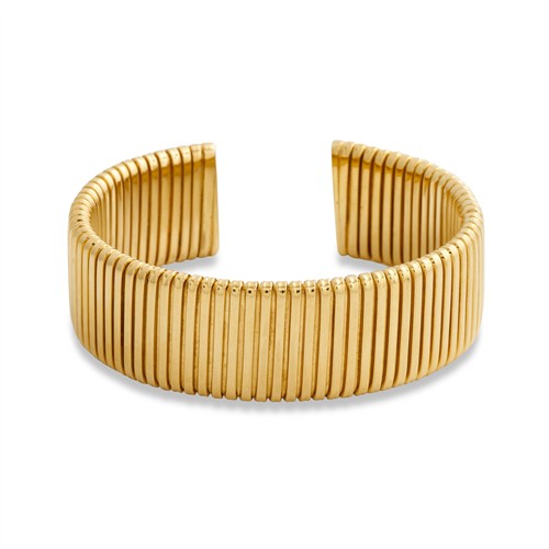 The 20mm wide flexible cuff is of tubogas design, inner diameter 57mm, gross weight approximately 64.3 grams, Italian workshop registration marks.