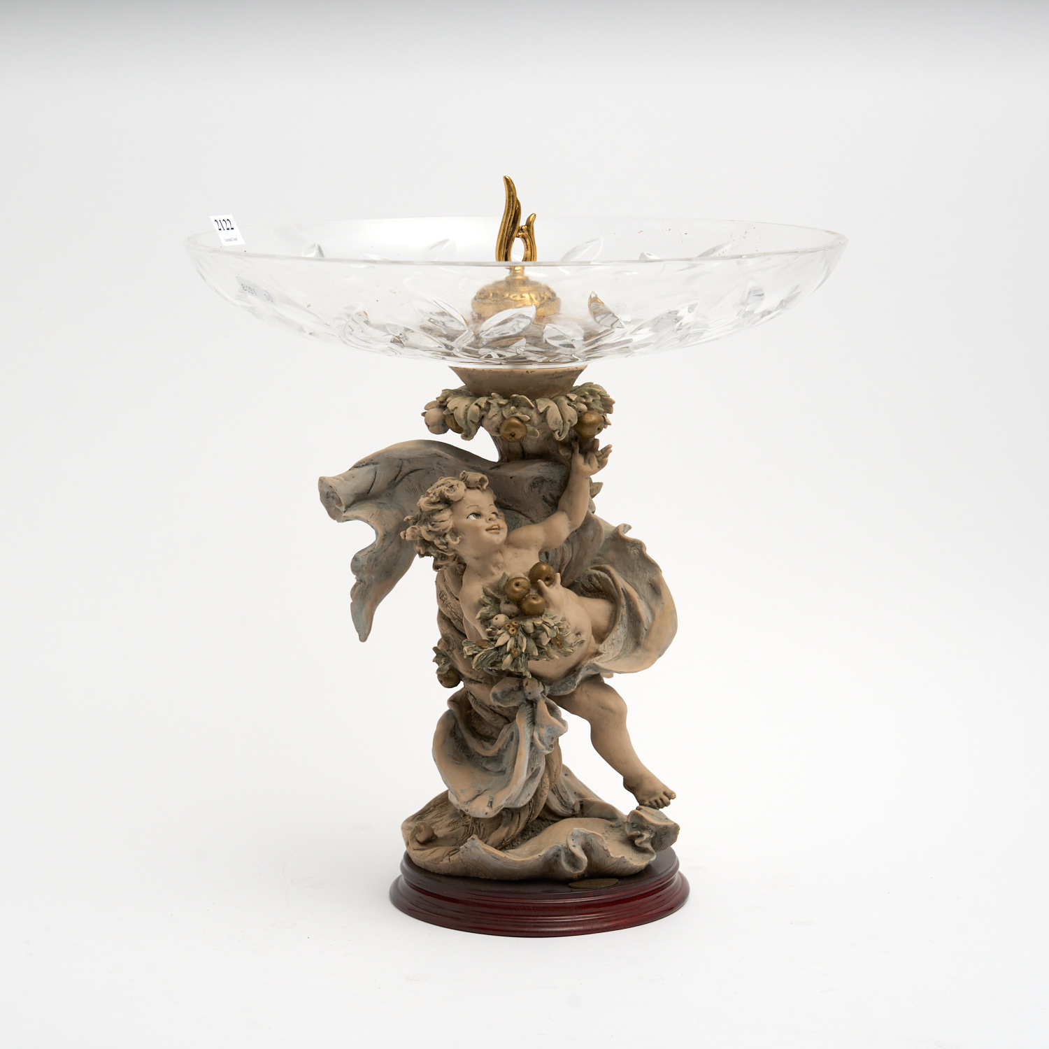 A CAPODIMONTE PORCELAIN AND GLASS TAZZA, THE BASE MODELLED BY GIUSEPPE ARMANI H.33CM