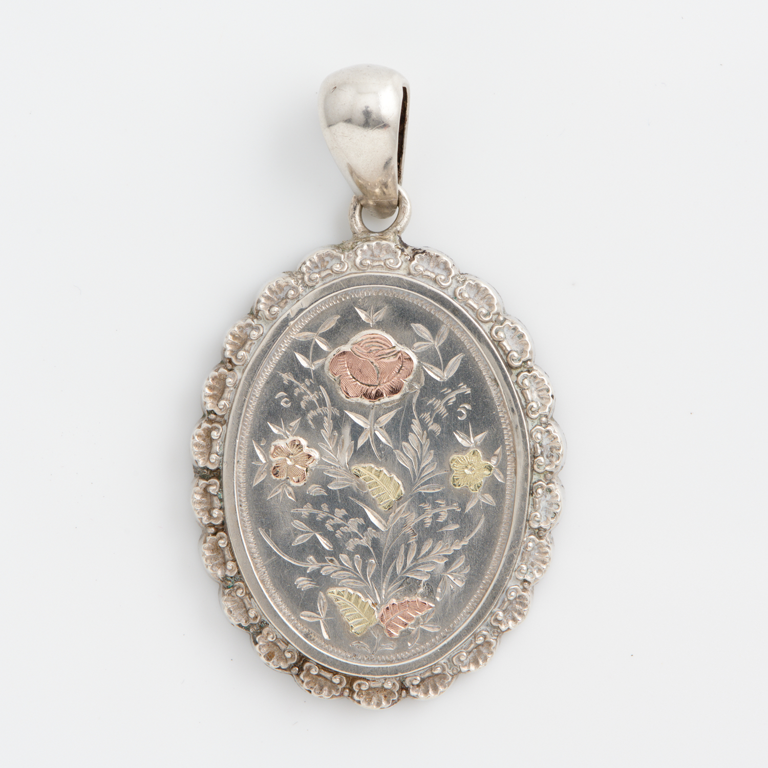 A VICTORIAN LOCKET/PENDANT IN STERLING SILVER, 50MM X 30MM