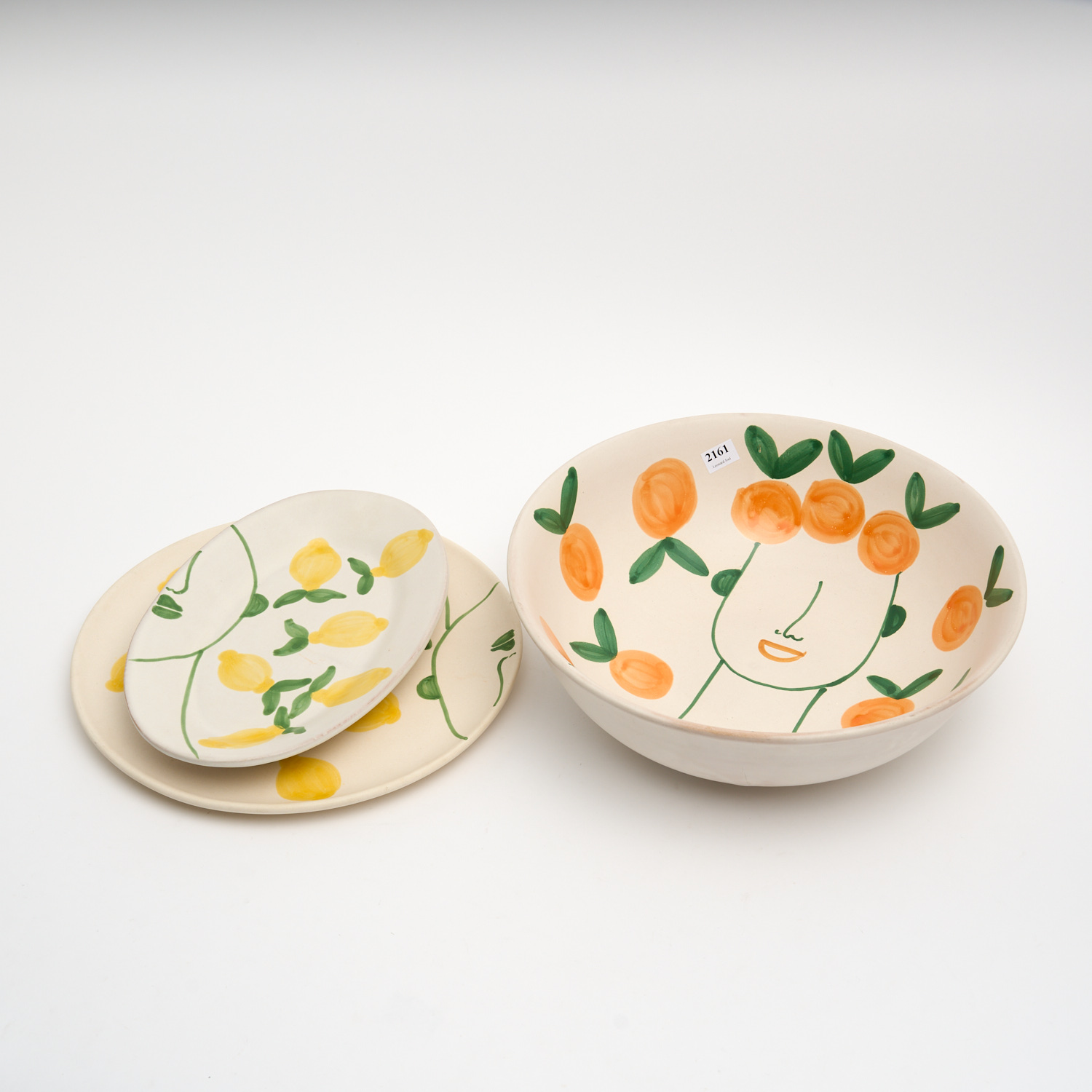 THREE PIECES OF ITALIAN SERVING WARE HANDPAINTED WITH ORANGES AND LEMONS DIA.34CM (LARGEST)