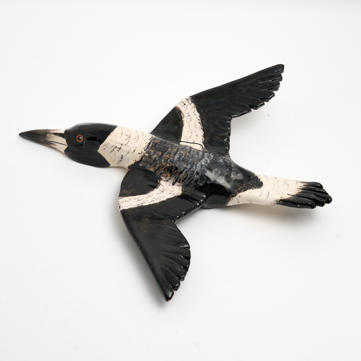 A VINTAGE AUSTRALIAN POTTERY MAGPIE WALL HANGING L.33CM