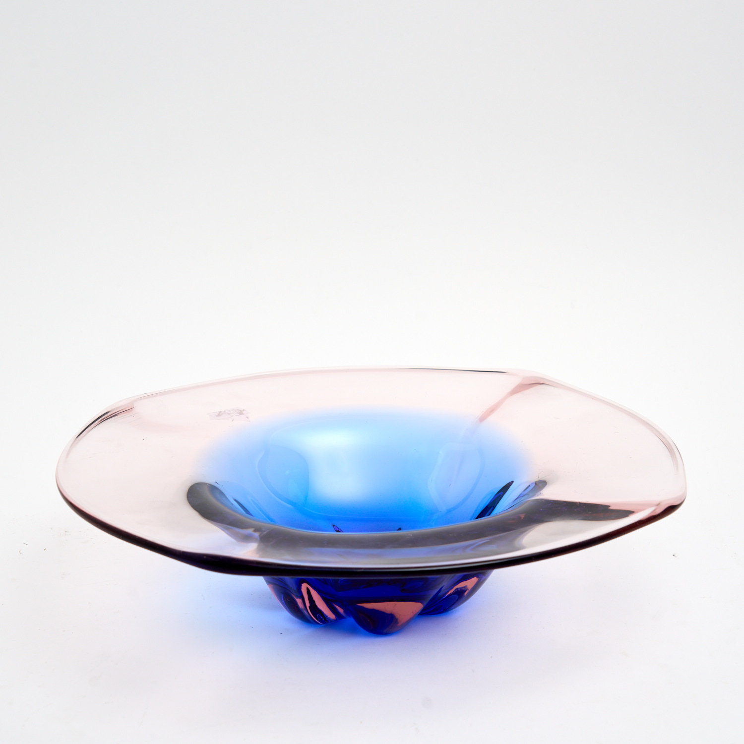 A VINTAGE ART GLASS TWO TONED CENTRE PIECE BOWL L.32CM